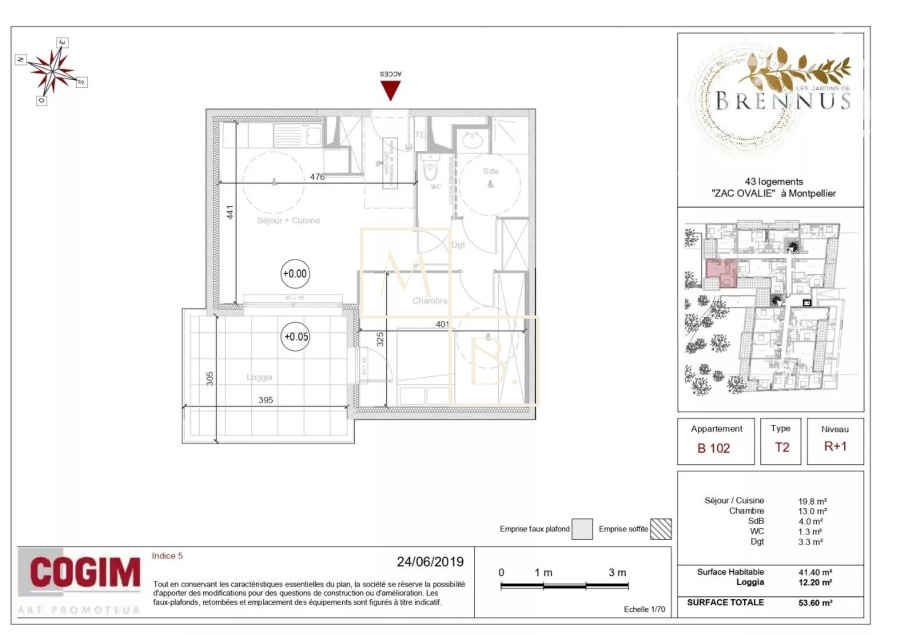 Appartement 2 pièce(s) 1 chambre(s) 41.59 m²