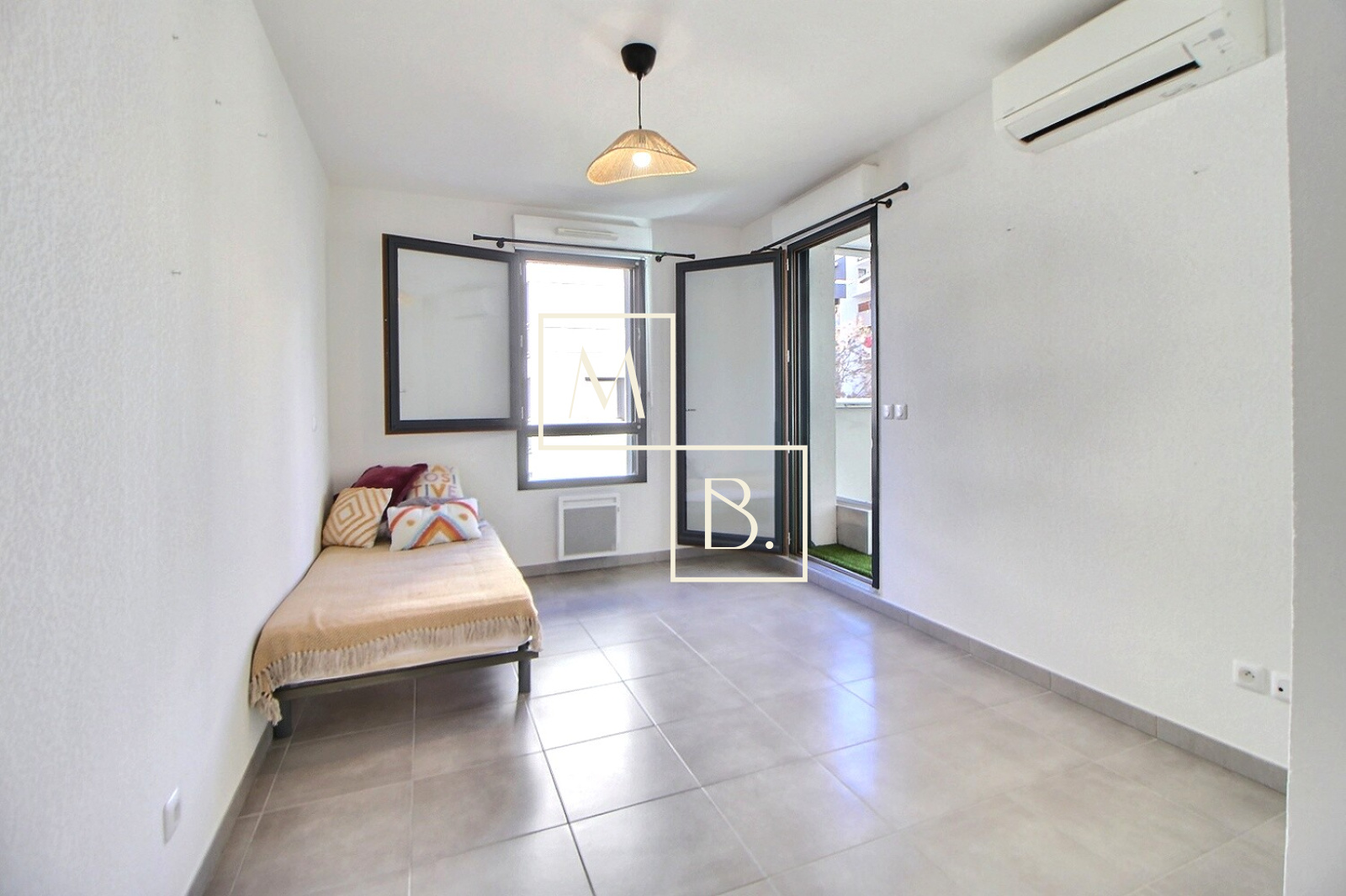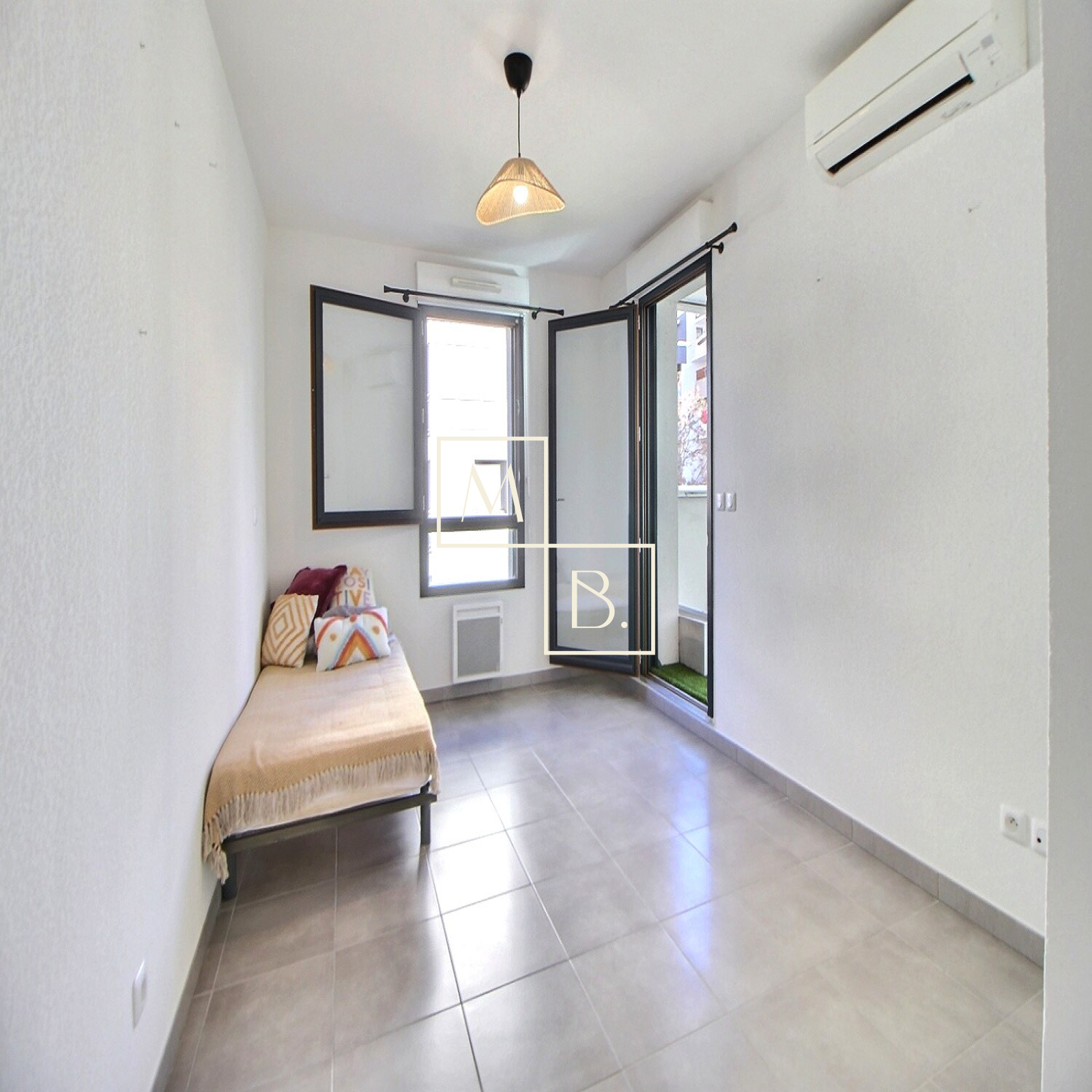 Vous disposerez également d'un garage boxé en sous-sol, du double vitrage PVC, volets roulants électriques et manuels, climatisation réversible au séjour et dans 1 chambre, eau froide/eau chaude collectifs et chauffage électrique individuel.