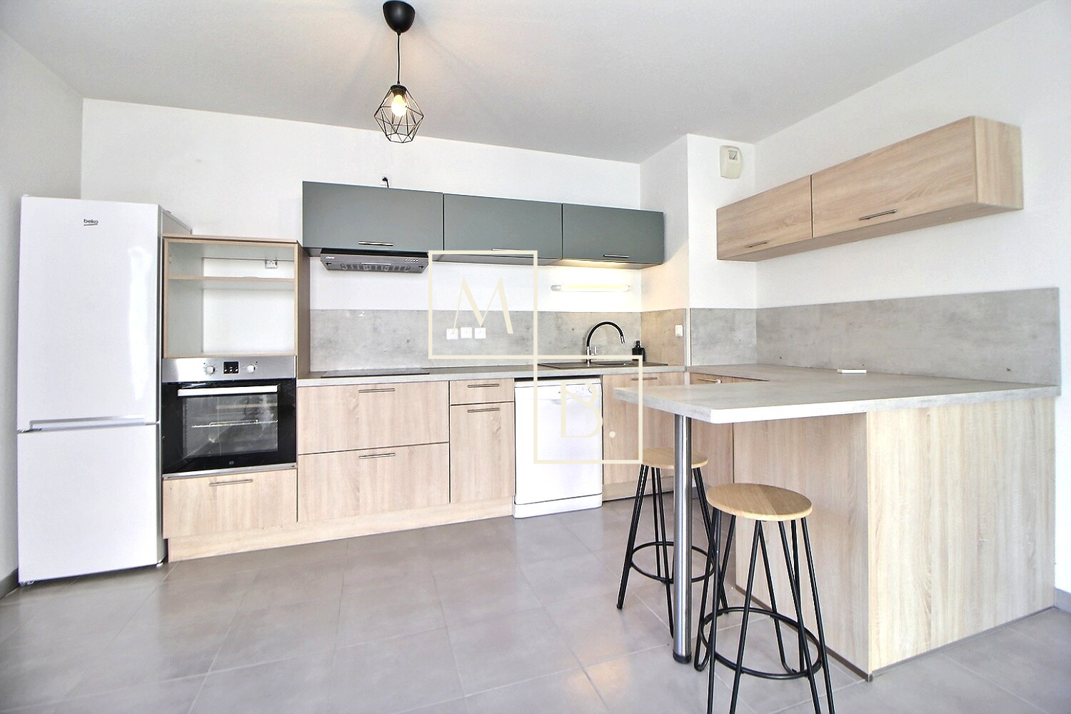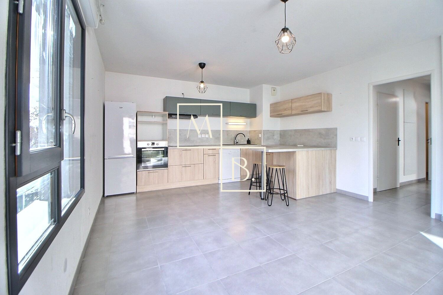 Nous vous proposons à la location ce T3 de 61.75m² habitables, situé au 1er étage avec ascenseur et comprenant : une entrée/couloir avec placard, deux chambres avec placard intégré, une pièce de vie lumineuse avec cuisine américaine aménagée/équipée donnant accès à une belle loggia de 10m² environ, une salle de bains avec raccords machine à laver ainsi qu'un grand WC.