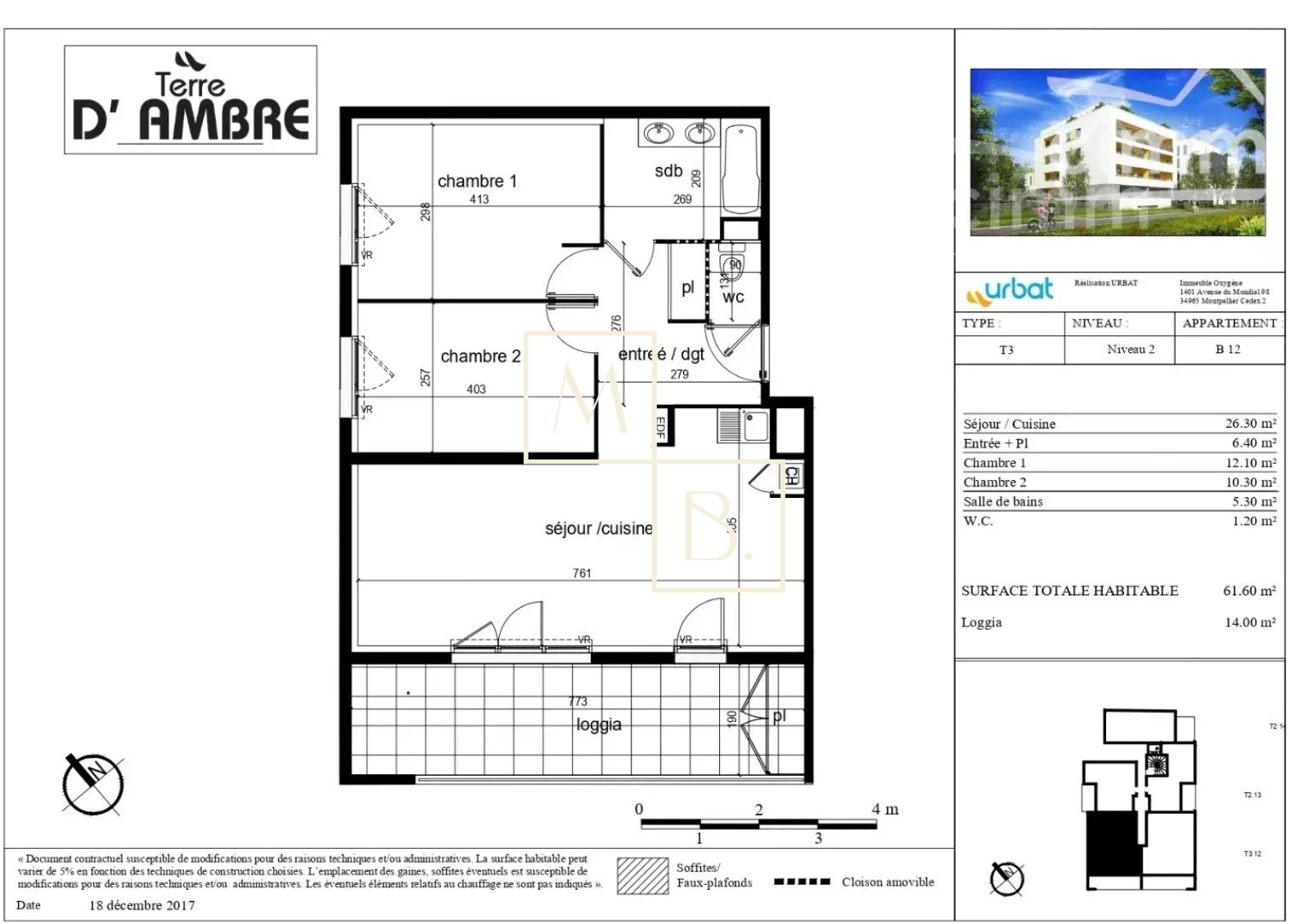 Appartement 3 pièce(s) 2 chambre(s) 61.6 m²
