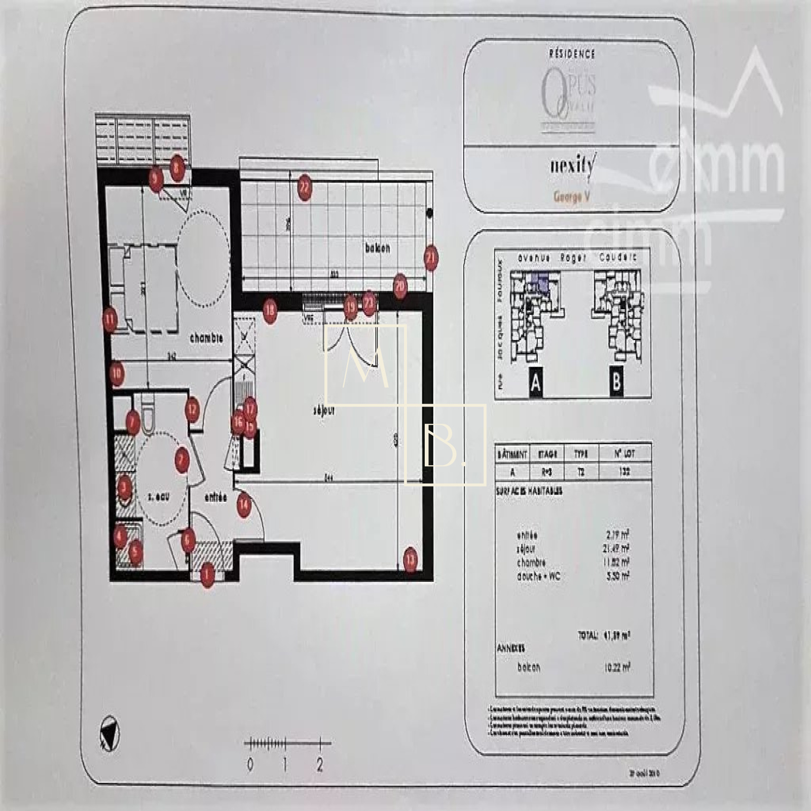 Appartement 2 pièce(s) 1 chambre(s) 41.59 m²