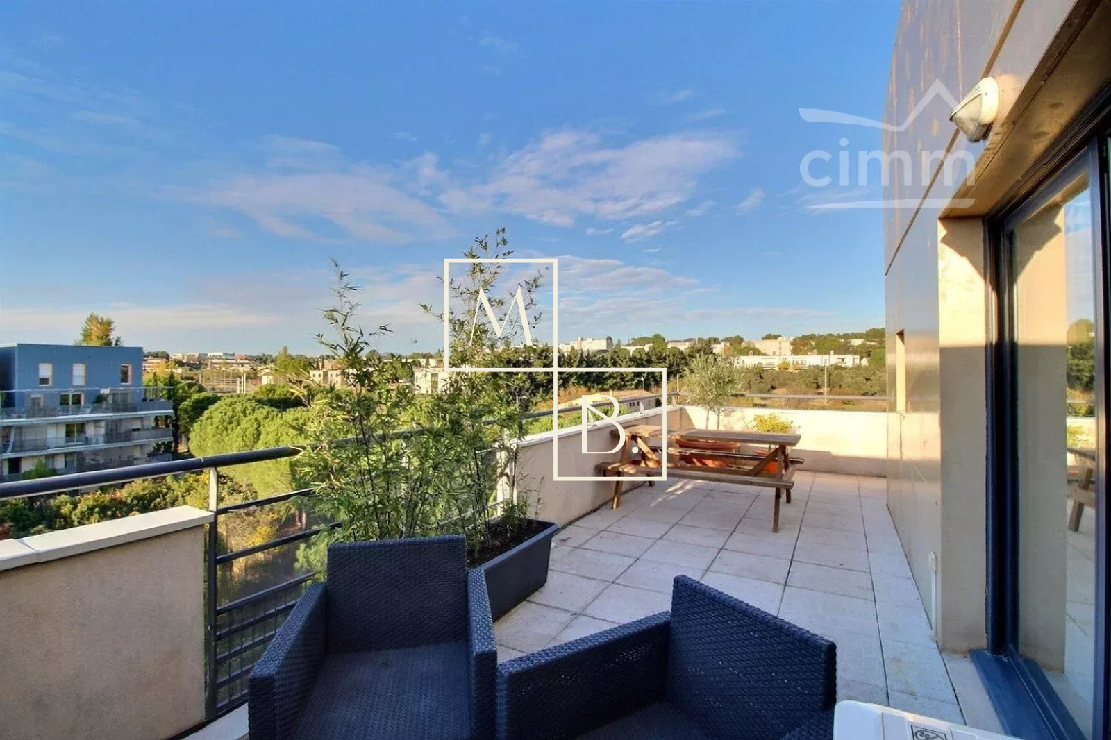 SUPERBE Location MALBOSC T2 meublé 41m² Terrasse 33m² + Parking. Localisé au Nord de Montpellier, dans un secteur dynamique aux nombreux commerces et espaces verts, proche des facultés et très bien desservi avec la ligne 1 du tramway au pied de l'immeuble. Ce logement de 41,05m² habitable au 4ème et dernier étage avec ascenseur, entièrement meublé avec soin et aux finitions impeccables se compose d'une entrée donnant accès à une grande pièce de vie lumineuse avec cuisine ouverte aménagée/équipée, une terrasse vue panoramique en L de 33m², une chambre + placard, une salle d'eau avec WC. Double vitrage PVC, volets roulants motorisés au séjour, chauffage/eau chaude individuels gaz, visiophone. Vous disposerez également d'une place de stationnement privative extérieure. LIBRE LE 16 JUIN Loyer: 800€/mois dont 74€ de charges (eau froide, entretien des communs, TEOM). Dépôt de garantie: 1452€. Honoraires à la charge du locataire: 410,50€ (visite, constitution de dossier, rédaction du bail) + 123,15€ (état des lieux). Montant estimé des dépenses annuelles d'énergie pour un usage standard : entre 572€ et 774€ par an. Prix moyens des énergies indexés au 01/01/2021 (abonnements compris). Zone soumise à encadrement des loyers, loyer de référence : 15,20€/m² - loyer de référence majoré : 18,20€/m². Votre interlocutrice privilégiée: Clotilde CABANES, chargée de gestion locative de Cimm Immobilier Montpellier. - RCS 50866299600042 - Caisse de garantie QBE