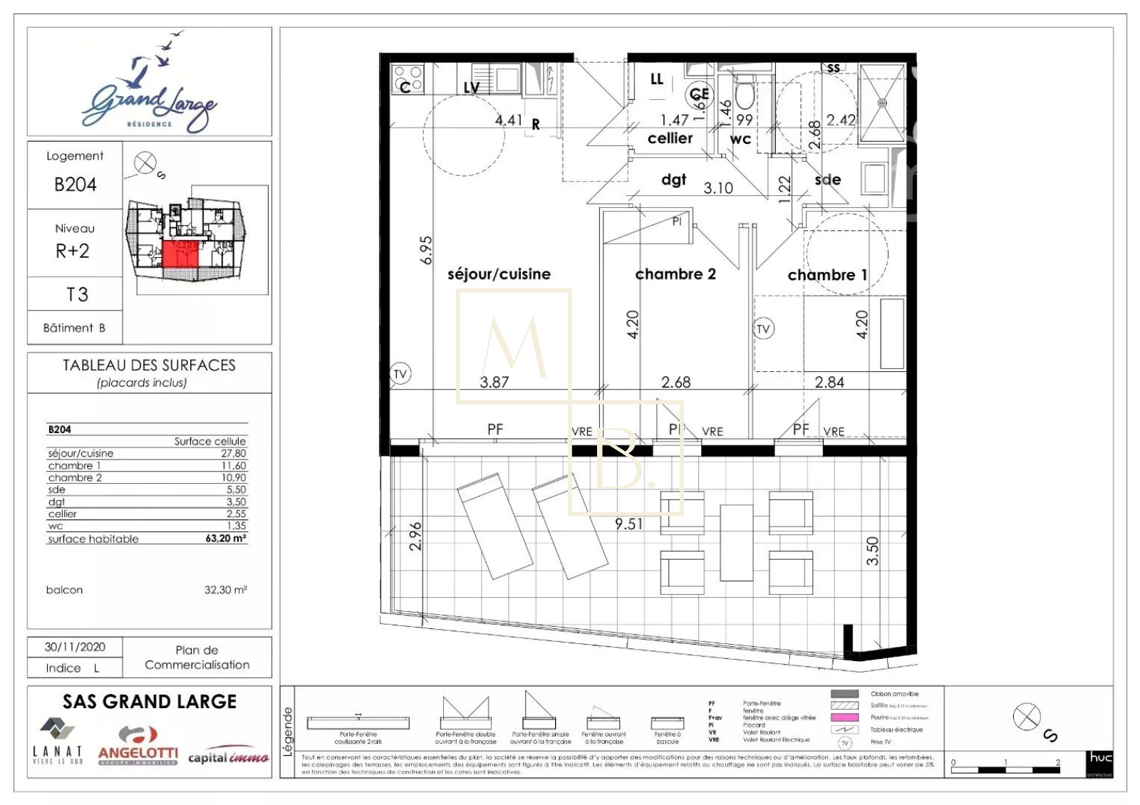 PRESTIGE, A louer Sérignan T3 NEUF 63m² R+2 Terrasse 32m² + Parking. A 15 min de Béziers, entre Narbonne et Montpellier, Sérignan bénéficie d?un cadre de vie unique au sein d?une nature préservée: plages à 500m, espace protégé des Orpellières, plaines viticoles... Toutes les commodités à 5min à pieds (commerces, services, professions médicales/paramédicales?) pour être une ville dynamique à l?année et une station balnéaire de qualité avec port de plaisance. Installée dans le nouveau quartier résidentiel « Les Jardins de Sérignan », dans un domaine privé de 3 résidences à taille humaine, organisés autour d?une piscine collective et jardins paysagés, Le Grand Large vous propose ce beau T3 de 63,20m² habitable exposé Sud-Ouest, comprenant: un grand séjour avec cuisine ouverte aménagée/équipée (plaque/hotte) donnant accès à une vaste terrasse, un cellier/buanderie avec ballon thermodynamique, dégagement desservant 2 chambres dont 1 avec placard, une salle d'eau avec douche à l'italienne et un WC séparé. Place de parking sécurisée/privative, menuiseries alu double vitrage, volets roulants électriques, chauffage électrique individuel, fibre, visiophone. DPE en cours, remis au bail. Soumis au dispositif Pinel. LIBRE fin mars. Loyer: 725€/mois dont 80€ de charges (eau froide incluse). Dépôt de garantie: 645€. Honoraires à la charge du locataire: 505,60€ (honoraires de visite, constitution de dossier, rédaction du bail) + 189,60€ (frais d'état des lieux). Votre interlocutrice privilégiée: Célia Bihi, agent commercial (immatriculé au RSAC de Montpellier n° 832 378 533) de l'agence Cimm Immobilier Montpellier.