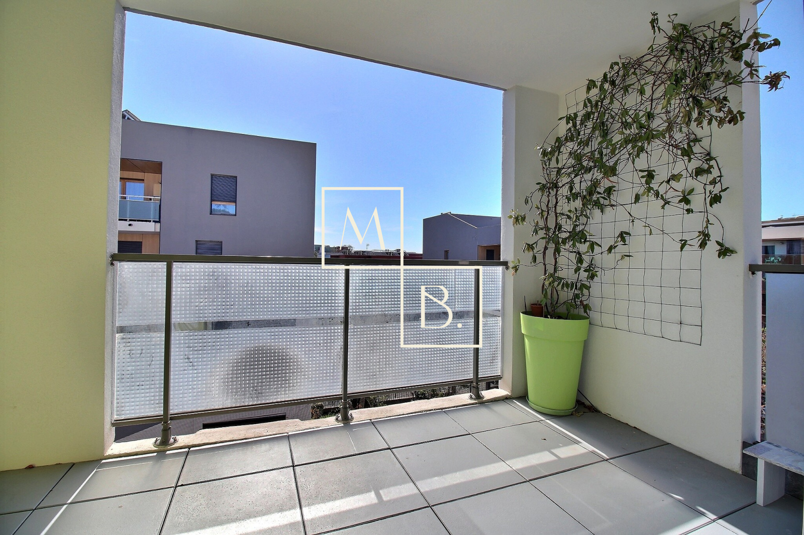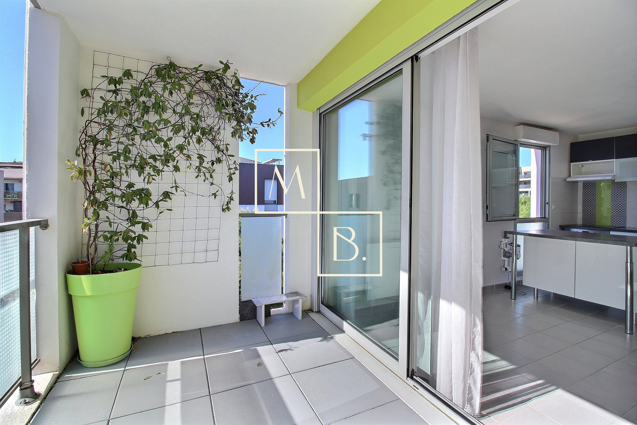 Agréable terrasse de 10 m² exposée sud-est.