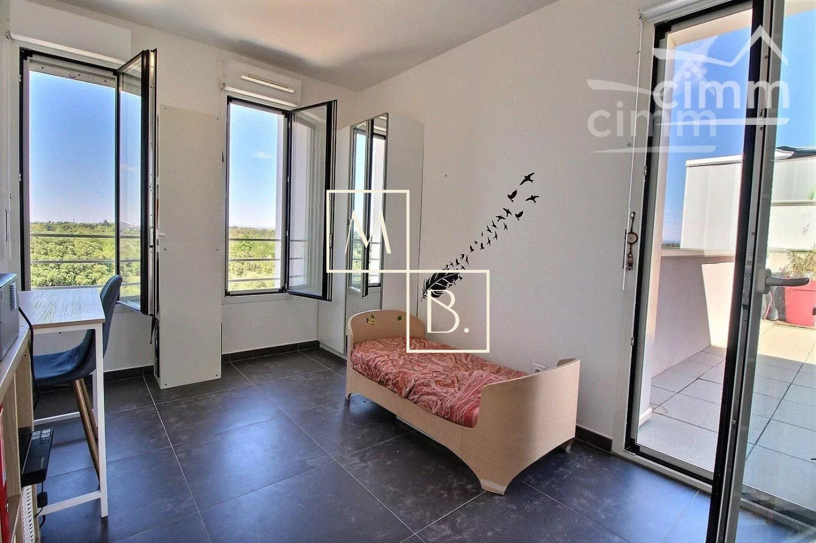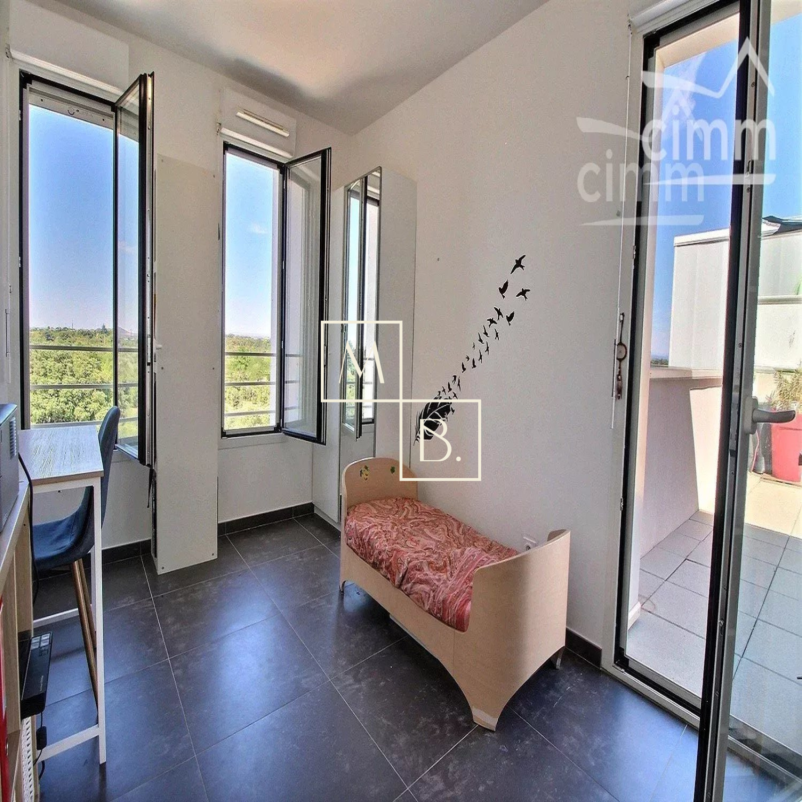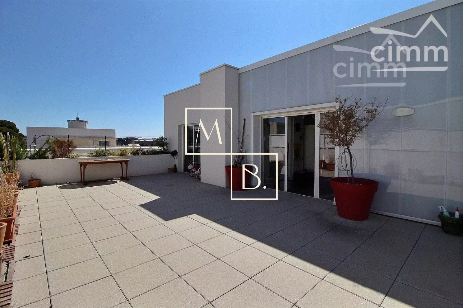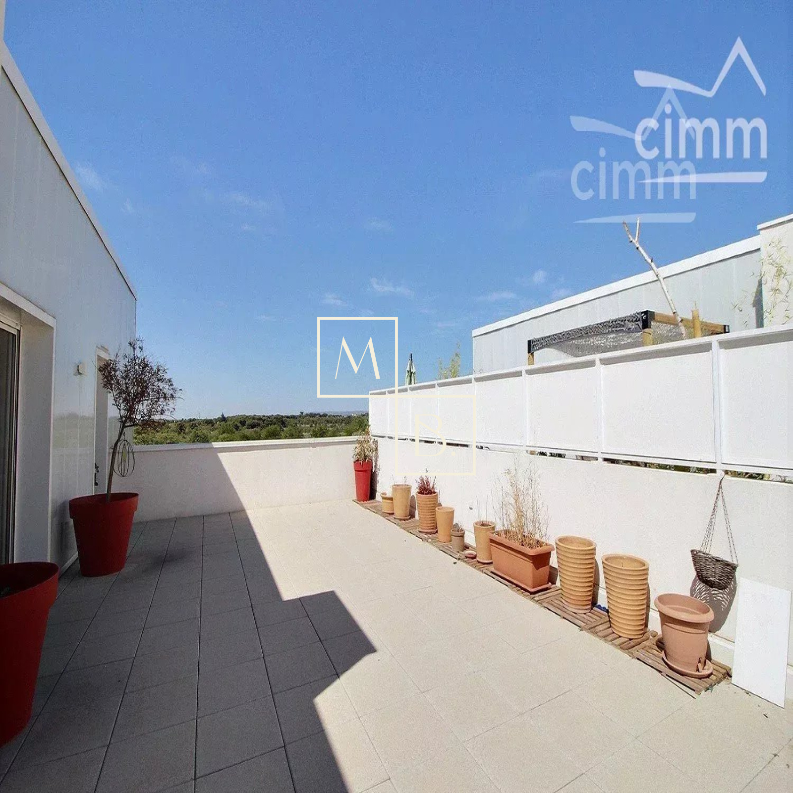 A VENDRE, Montpellier, Ovalie, RARE, dernier étage, appartement T4 en toit-terrasse de 78 m2 avec deux terrasses de 57 m2 et 10 m2 sans vis-à-vis et un garage fermé en sous-sol. Situé à 15 minutes à pieds de la ligne de tram 1 et 2 arrêt Les Sabines et proche des écoles, collèges commodités et commerces (quelques minutes à pieds). Copropriété de bon standing, livrée en 2016 par NEXITY, encore sous garantie décennale jusqu'en 2026. Label BBC et RT 2012. Vue exceptionnelle !! Appartement traversant situé au 5 ème et dernier étage avec ascenseur. En parfait état, lumineux grâce à ses nombreuses ouvertures, il comprend : une entrée donnant sur un beau séjour ouvert sur la terrasse, une cuisine SCHMITT ouverte et entièrement aménagée, un dégagement/couloir, une salle de bains avec double vasque + WC, et 3 chambres dont chacunes ont également un accès sur l'extérieur. Prestations de qualités : menuiseries PVC, double vitrage, portes fenêtres, appartement carrelé 60X60, volets roulants automatiques (séjour / cuisine), et manuels (chambres), alarme. Chauffage éléctrique individuel. Deux belles terrasses, une 57 m2 avec jardinière et l'autre de 10 m2 .... VUE PANORAMIQUE ! Garage fermé en sous-sol, avec option d'en acquérir un deuxième en supplément du prix. Pas de travaux à prévoir. COUP DE COEUR ! Bien soumis au statut juridique de la copropriété. Nb de lots 90. Charges annuelles de copropriété (Montant moyen annuel quote part du budget prévisionnel vendeur ) : 1 781€. Aucune procédure en cours menée sur le fondement des articles 29-1 A et 29-1 de la noi n° 65-557 du 10 juillet 1965 et de l'article L.615.6 du CCH. Votre interlocuteur privilégié : Augustine HUCHIN, agent commercial de l'agence Cimm Immobilier Montpellier, inscrit au RSAC de Montpellier sous le numéro 848 442 364.