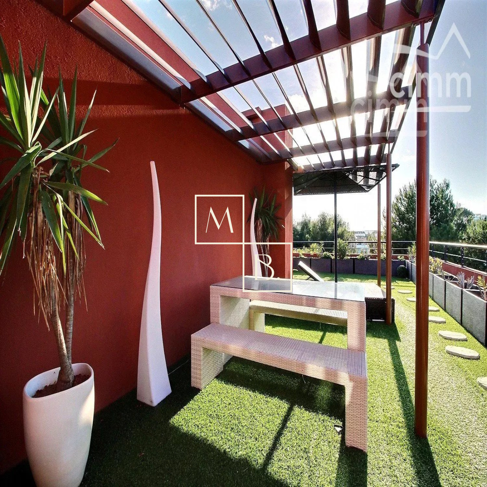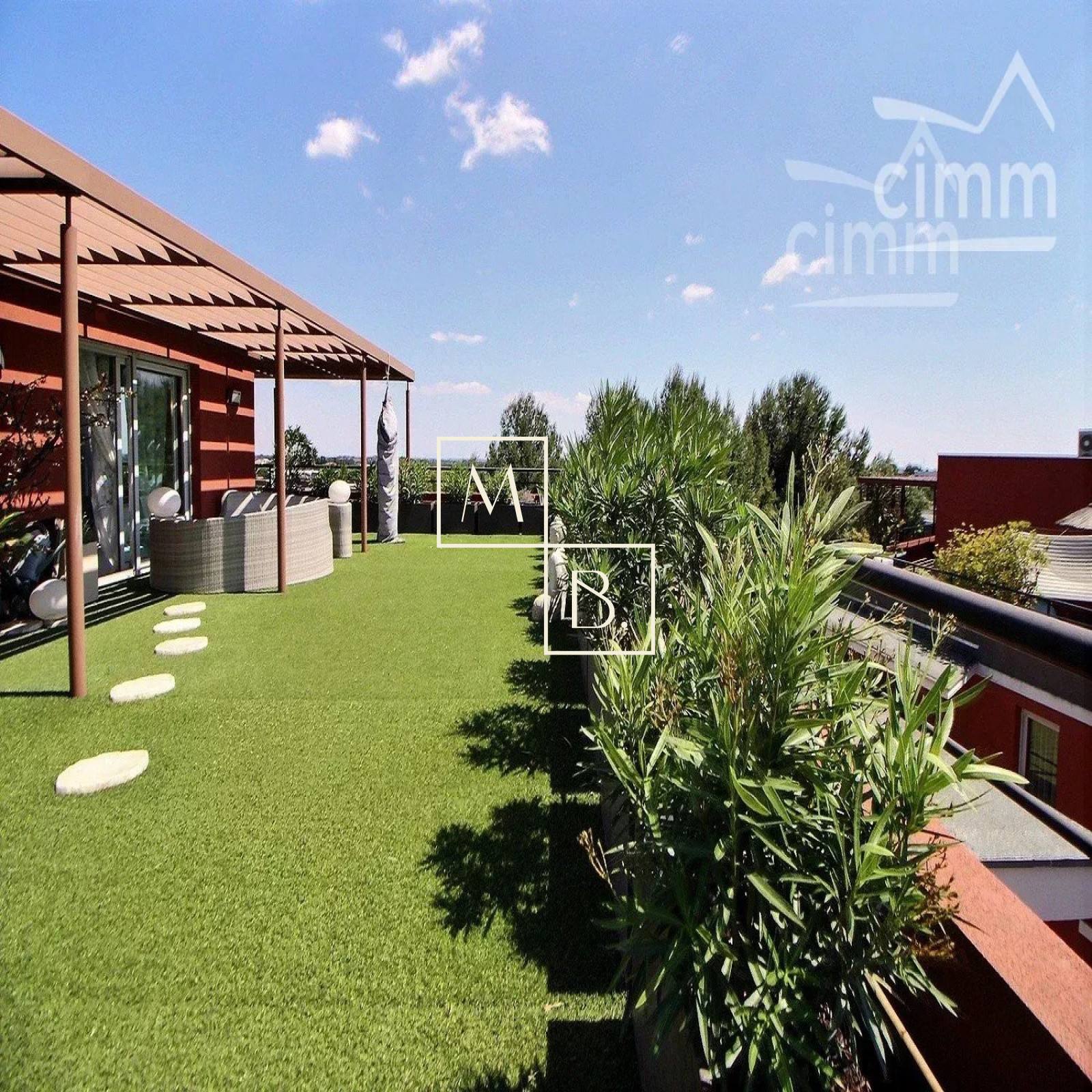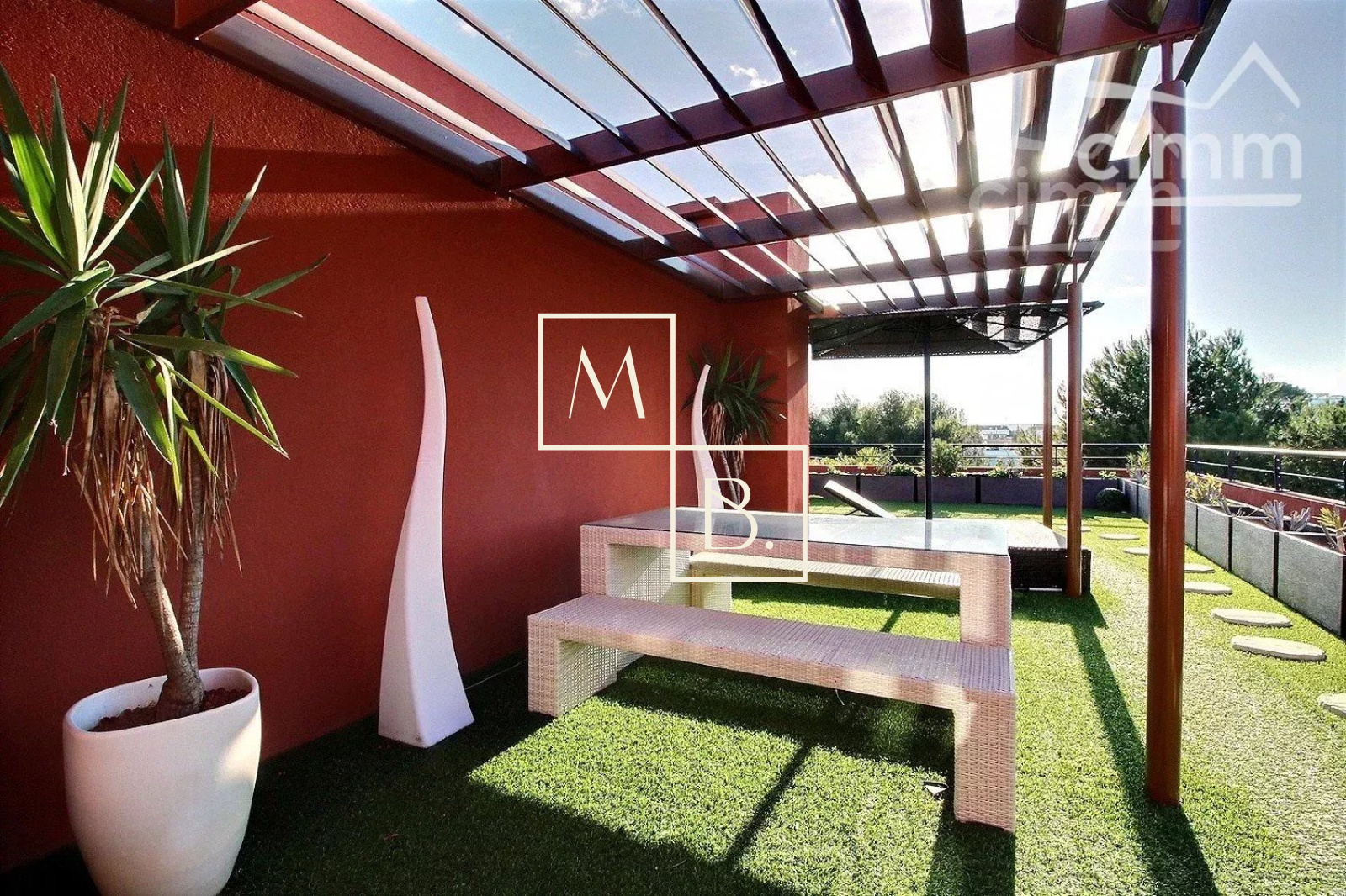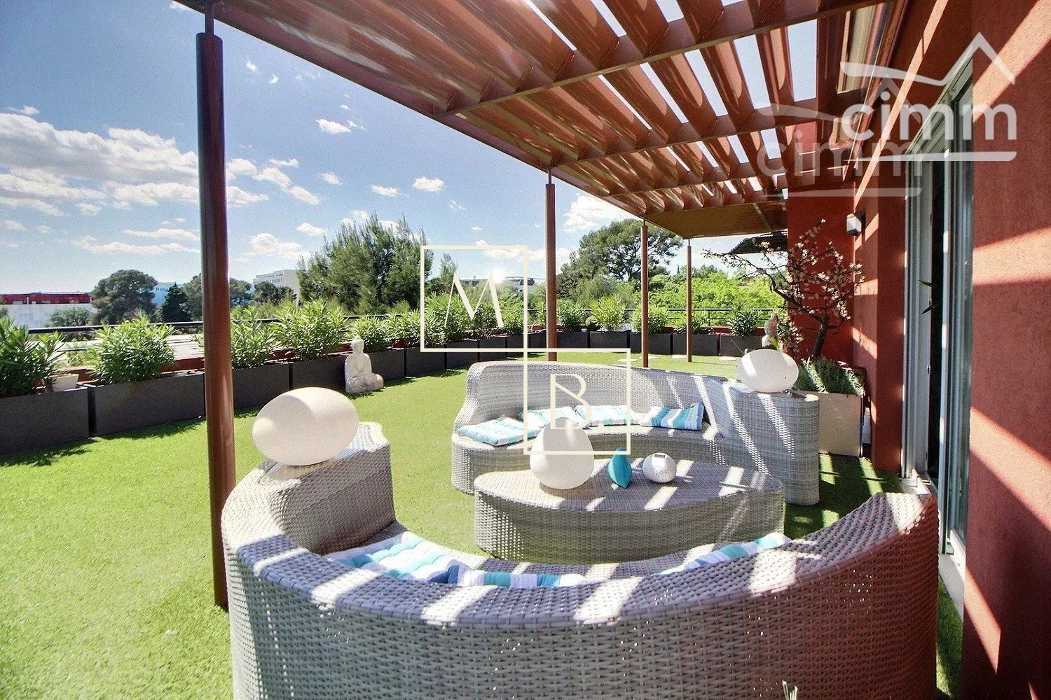 A VENDRE, Montpellier, UNIQUE et RARE, secteur Marquerose limite Les Grisettes, toît terrasse, appartement T5 d'exception de 106 m2 avec terrasse de 136 m2 et vue panoramique ! Situé à 5 min à pied de la ligne 2 du Tramway, arrêt Les Sabines, en liaison directe avec le Centre historique et la gare St Roch et à quelques minutes des commodités. Accès proche de l'autoroute et plage à 15 min. Résidence verdoyante et de standing pour cette construction de 2011, entièrement sécurisée et avec accès par visiophone. Situé au dernier étage avec ascenseur, cet appartement de caractère et UNIQUE sur Montpellier se caractérise par de grands espaces de vies ouverts sur une généreuse terrasse ! Décoration contemporaine, soignée et de très grande qualité, ce bien est spacieux et lumineux. Bien agencé, il comprend : une vaste entrée avec placard/penderie, une buanderie, un double séjour de 35 m2 avec doubles baies vitrées coulissantes donnant accès à la terrasse, une cuisine indépendante haut de gamme, entièrement aménagée et équipée (plans en marbre, plaque de cuisson induction, hotte, four, frigo américain, lave vaisselle, micro-onde), un WC séparé, une suite parentale avec placard et accès privatif à une salle de bain + douche + WC, 2 autres chambres dont une avec placard et une salle de douche à l'italienne. Prestations haut de gamme : chauffage/climatisation reversible centralisé, menuiseries PVC blanc double vitrage, volets roulants électriques, fibre optique, carrelage, vidéophone, alarme. MAGNIFIQUE terrasse de 136 m2 avec gazon synthétique, décoration florale, plantes, barbercue, pergoala sans aucun vis-à-vis et bénéficiant d'une triple exposition (Est, Sud et Ouest). 3 stationnements de voiture : garage double fermé de 20 m2 en sous-sol sécurisé et place de parking. Bien soumis au statut de la copropriété comprenant 152 lots d'habitations. Montant moyen annuel de la quote-part du budget prévisionnel à la charge du vendeur : 2 405 €. Aucune procédure en cours menée sur le fondement des articles 29-1 A et 29-1 de la loi n° 65-557 du 10 juillet 1965 et de l'article L. 615-6 du CCH. Honoraires à la charge du vendeur. Votre interlocuteur privilégié : Olivier BIHI, gérant de l'agence Cimm immobilier Montpellier.