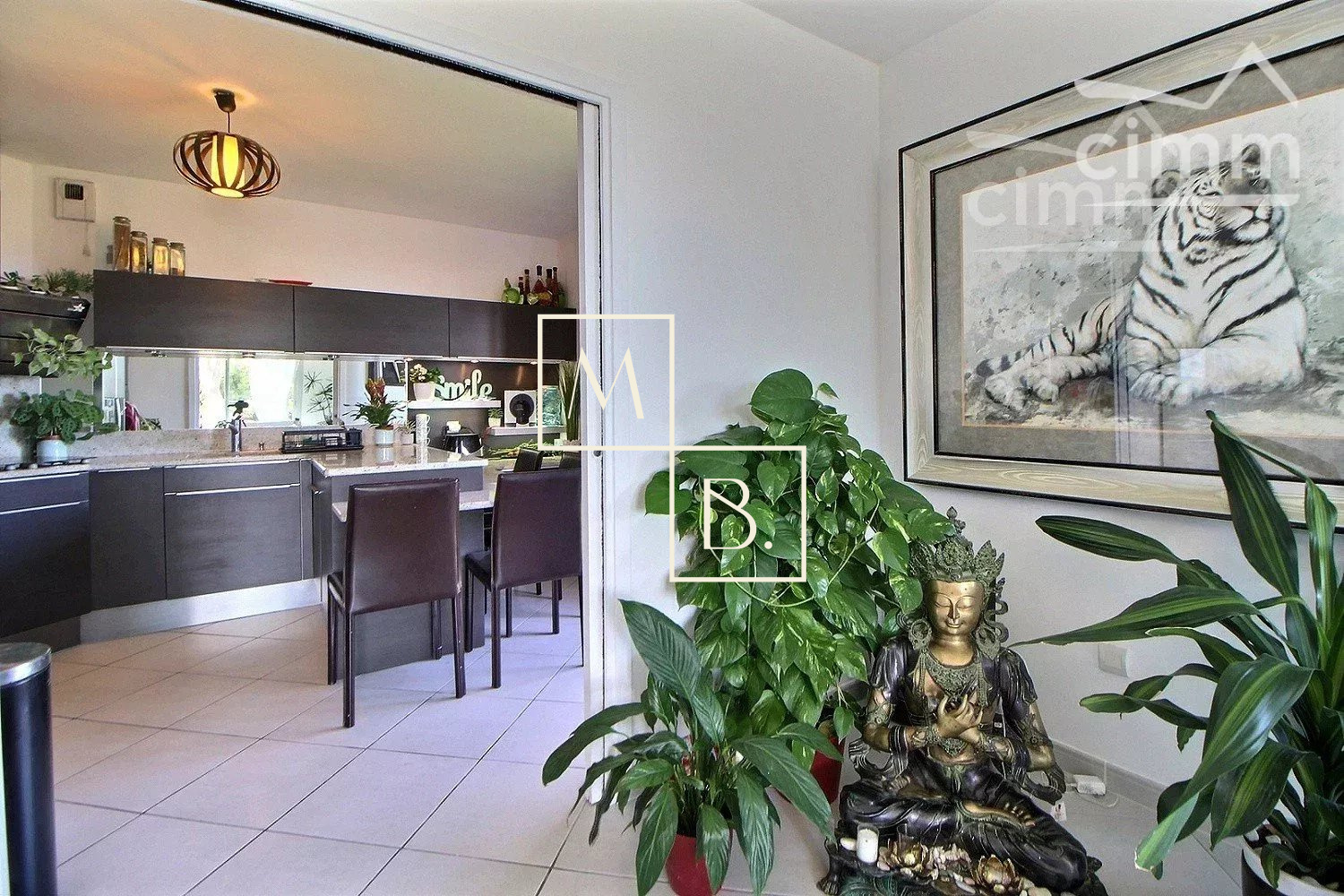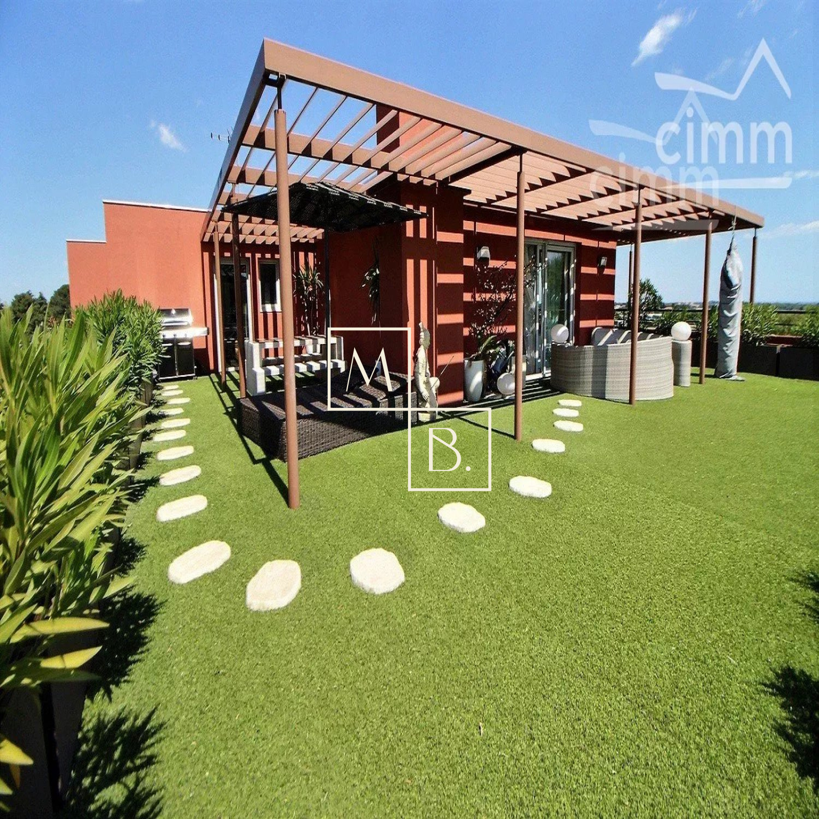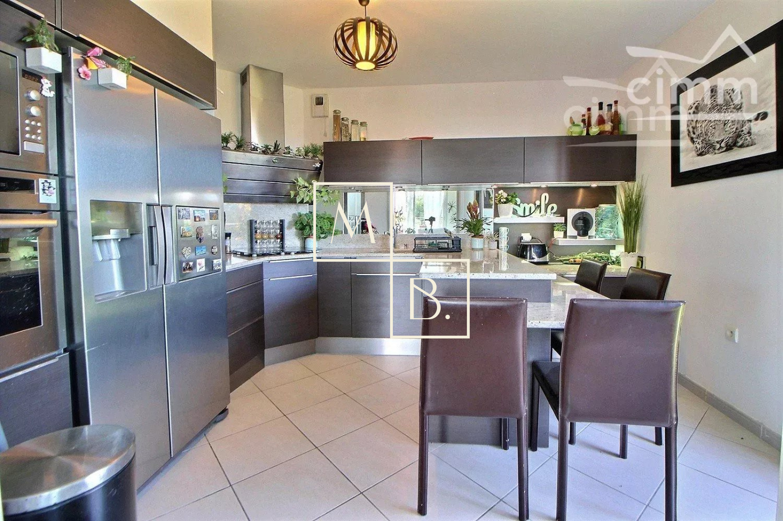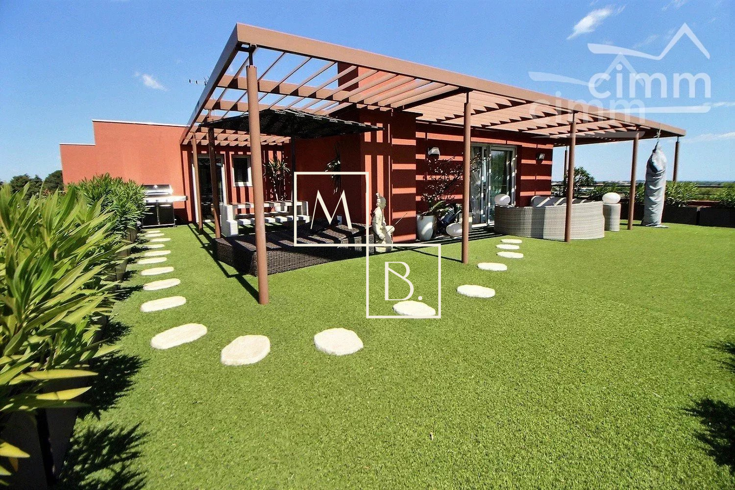A VENDRE, Montpellier, UNIQUE et RARE, secteur Marquerose limite Les Grisettes, toît terrasse, appartement T5 d'exception de 106 m2 avec terrasse de 136 m2 et vue panoramique ! Situé à 5 min à pied de la ligne 2 du Tramway, arrêt Les Sabines, en liaison directe avec le Centre historique et la gare St Roch et à quelques minutes des commodités. Accès proche de l'autoroute et plage à 15 min. Résidence verdoyante et de standing pour cette construction de 2011, entièrement sécurisée et avec accès par visiophone. Situé au dernier étage avec ascenseur, cet appartement de caractère et UNIQUE sur Montpellier se caractérise par de grands espaces de vies ouverts sur une généreuse terrasse ! Décoration contemporaine, soignée et de très grande qualité, ce bien est spacieux et lumineux. Bien agencé, il comprend : une vaste entrée avec placard/penderie, une buanderie, un double séjour de 35 m2 avec doubles baies vitrées coulissantes donnant accès à la terrasse, une cuisine indépendante haut de gamme, entièrement aménagée et équipée (plans en marbre, plaque de cuisson induction, hotte, four, frigo américain, lave vaisselle, micro-onde), un WC séparé, une suite parentale avec placard et accès privatif à une salle de bain + douche + WC, 2 autres chambres dont une avec placard et une salle de douche à l'italienne. Prestations haut de gamme : chauffage/climatisation reversible centralisé, menuiseries PVC blanc double vitrage, volets roulants électriques, fibre optique, carrelage, vidéophone, alarme. MAGNIFIQUE terrasse de 136 m2 avec gazon synthétique, décoration florale, plantes, barbercue, pergoala sans aucun vis-à-vis et bénéficiant d'une triple exposition (Est, Sud et Ouest). 3 stationnements de voiture : garage double fermé de 20 m2 en sous-sol sécurisé et place de parking. Bien soumis au statut de la copropriété comprenant 152 lots d'habitations. Montant moyen annuel de la quote-part du budget prévisionnel à la charge du vendeur : 2 405 €. Aucune procédure en cours menée sur le fondement des articles 29-1 A et 29-1 de la loi n° 65-557 du 10 juillet 1965 et de l'article L. 615-6 du CCH. Honoraires à la charge du vendeur. Votre interlocuteur privilégié : Olivier BIHI, gérant de l'agence Cimm immobilier Montpellier.