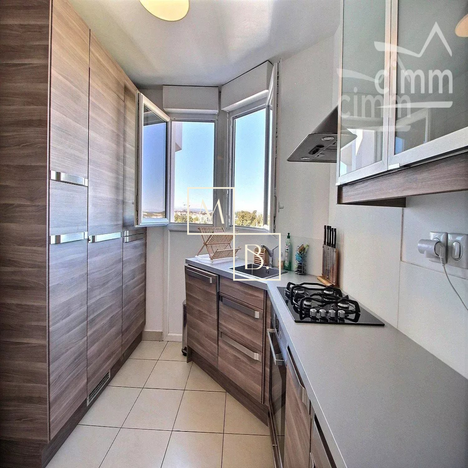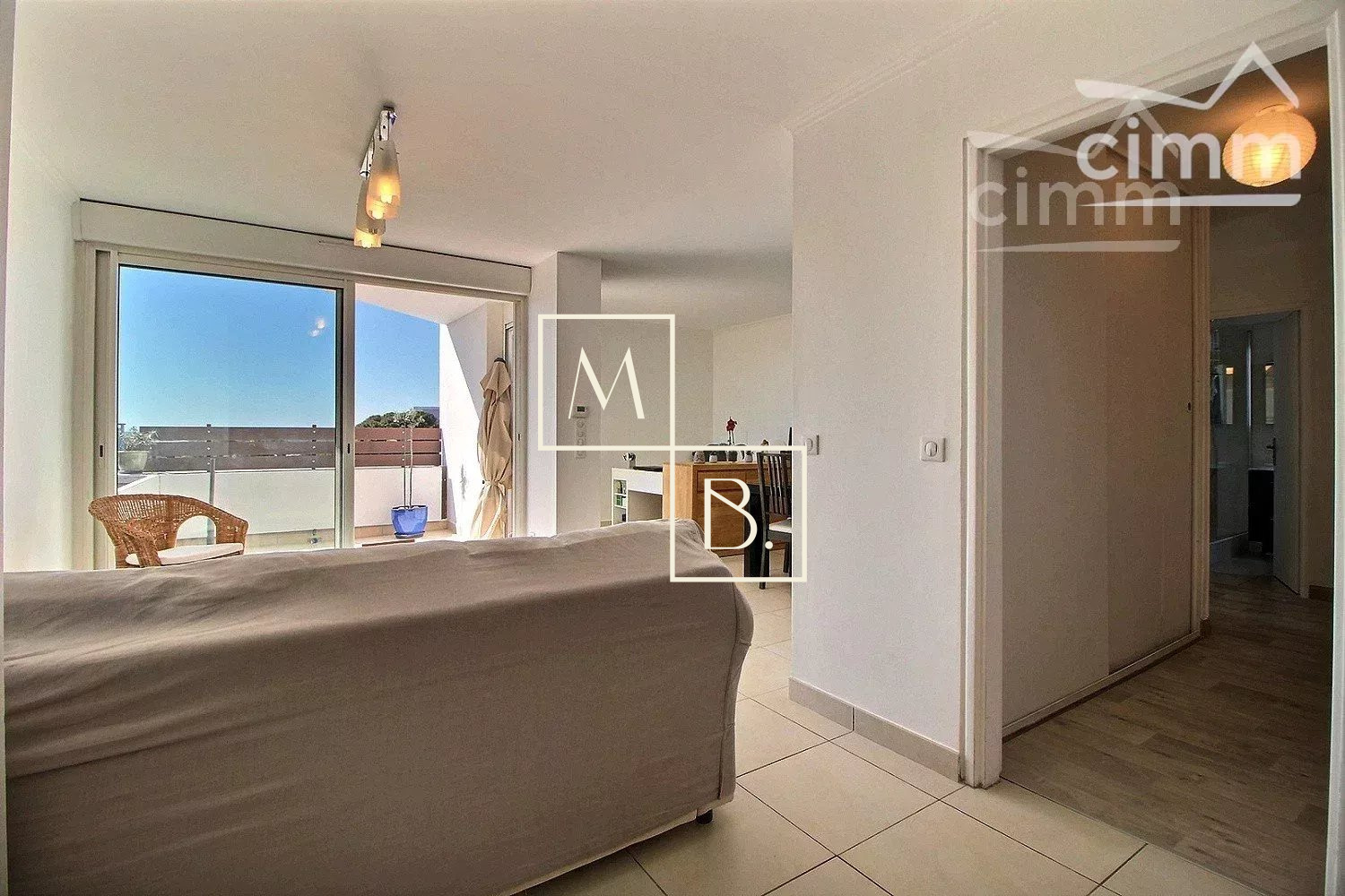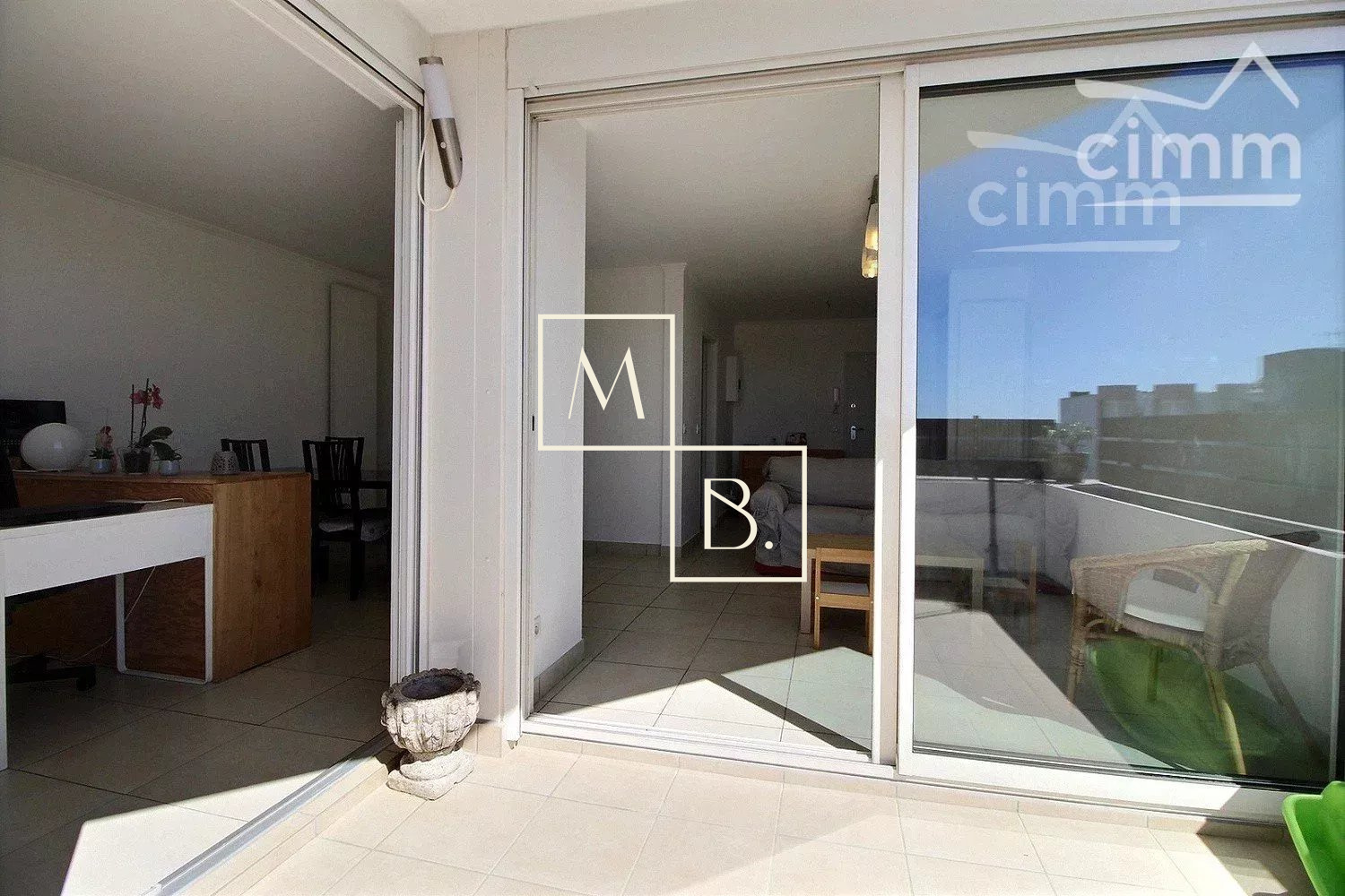 A VENDRE, Montpellier, Montcalm limitrophe Ovalie, dernier étage, appartement T4 de 91,29 m2 loi carrez avec terrasse de 8m2, cave et 2 places de parking. Situé non loin du rond point du M, du stade GGL Stadium et à quelques minutes des grands axes routiers, nombreuses commodités et de la futur ligne 5 du Tram. Copropriété bien entretenu des années 80 entièrement sécurisée, avec portail électrique et interphone. Appartement situé au 7 ème et dernier étage avec ascenseur. Extrèmement lumineux, triple exposition, traversant avec une vue imprenable en 360° sur le Front de Mer (de la terrasse) et la ville de Montpellier (de la cuisine). Intérieur bien agencé comprenant : entrée sur séjour avec placad/penderie, séjour en L ouvert sur la terrasse avec deux grandes baies, dégagement/couloir avec nombreux espaces de rangements et placards intégrés, cuisine indépendante aménagée et équipée, cellier/buanderie, WC séparés, salle de douche avec fenêtre et sèche serviette et 3 chambres parquetées dont 2 avec penderie. Double vitrage menuiserie PCV, chauffage gaz individuel. Terrasse carrelé de 8m2. Cave en sous-sol de 5,33m2 et 2 places de parking extérieur. Aucun travaux n'est à prévoir. Bien soumis au statut de la copropriété comprenant 210 lots d'habitations. Montant moyen annuel de la quote-part du budget prévisionnel à la charge du vendeur : 1 738 €. Aucune procédure en cours menée sur le fondement des articles 29-1 de la loi n° 65-557 du 10 juillet 1965 et de l'article L. 615-6 du CCH. Honoraires à la charge du vendeur. Votre interlocuteur privilégié : Olivier BIHI, gérant de l'agence Cimm Immobilier Montpellier.