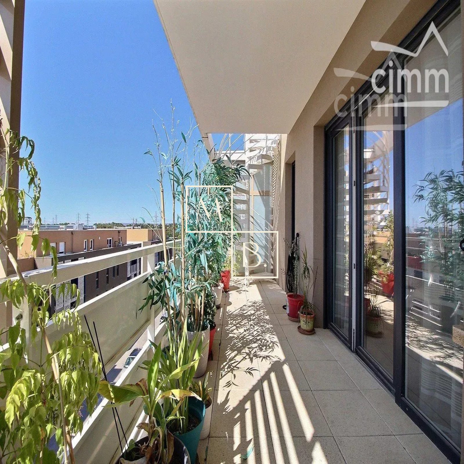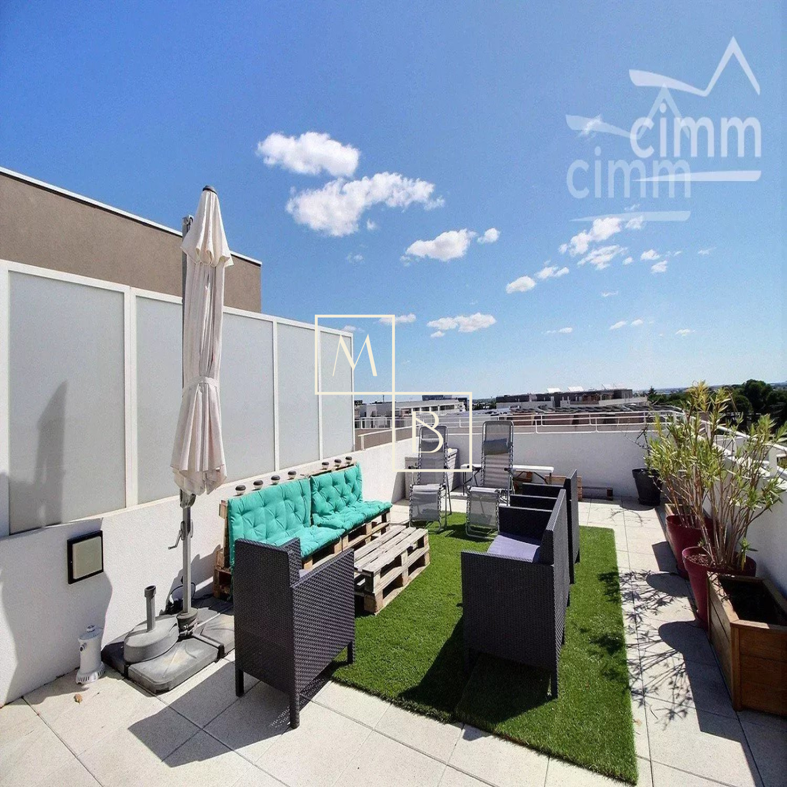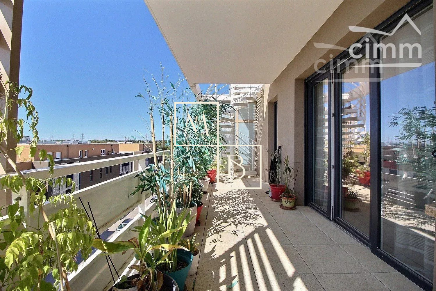 A VENDRE, Montpellier, Les Grisettes, dernier étage, appartement T5 de 108 m2 avec terrasse de 28 m2, solarium privé de 48 m2, un double garage fermé en sous sol et une cave. Situé à 5 minutes de l'arrêt de Tram Sabines, des commerces et des nouvelles Halles Plaza (16 commerces) et de la nouvelle clinique Saint Roch. À moins de 10 minutes de l'école maternelle et primaire du quartier. En parfait état situé au 3ème et dernier étage d'une résidence de bon standing construite en 2015, dénommée Régalissa et réalisée par Corim. Encore sous garantie decennale jusqu'en 2025, label BBC, norme RT2012. Exposé Sud, lumineux et bien agencé, il se compose : d'une entrée avec petit cellier/dressing, un WC séparé avec lave-mains, un double séjour de 40 m2 ouvert sur une cuisine aménagée et entièrement équipée donnant sur l'extérieur, un dégagement/couloir menant à la partie nuit qui comprend, une salle de bain avec meuble double vasque, 3 chambres avec placard/penderie (9, 10 et 11 m2), une suite parentale de 11 m2 à une salle d'eau et dressing privatif de 7 m2. Grande terrasse de 28 m2 situé au même niveau que l'appartement et sur la terrasse se trouve un escalier qui vous mènera a un magnifique solarium privé de 48 m2 situé sur le toît de l'immeuble, avec magnifique vue dégagée, sans aucun vis-à-vis et avec la possibilité d'y installer un spa. Prestations de qualité : climatisation, fenêtres et portes fenêtres double vitrage, menuiserie PVC avec isolation renforcée, volets roulants électriques chauffage par réseau urbain, eau chaude et eau froide collective (compris dans les charges). Un double garage en sous sol ainsi qu'une cave. COUP DE COEUR ASSURÉ !!! Bien soumis au statut juridique de la copropriété comprenant 67 lots d'habitation. Charges annuelles de copropriété ( Montant moyen annuel quote part budget prévisionnel vendeur ) : 3 175 €. Aucune procédure en cours menée sur le fondement des articles 29-1 A et 29-1 de la loi n°65 - 557 du 10 juillet 1965 et de l'article L. 615-6 du CCH. Honoraires à la charge du vendeur. Votre interlocuteur privilégié : Augustine HUCHIN de l'agence CIMM Montpellier, inscrite au RSAC de Montpellier sous le numéro 848 442 364.