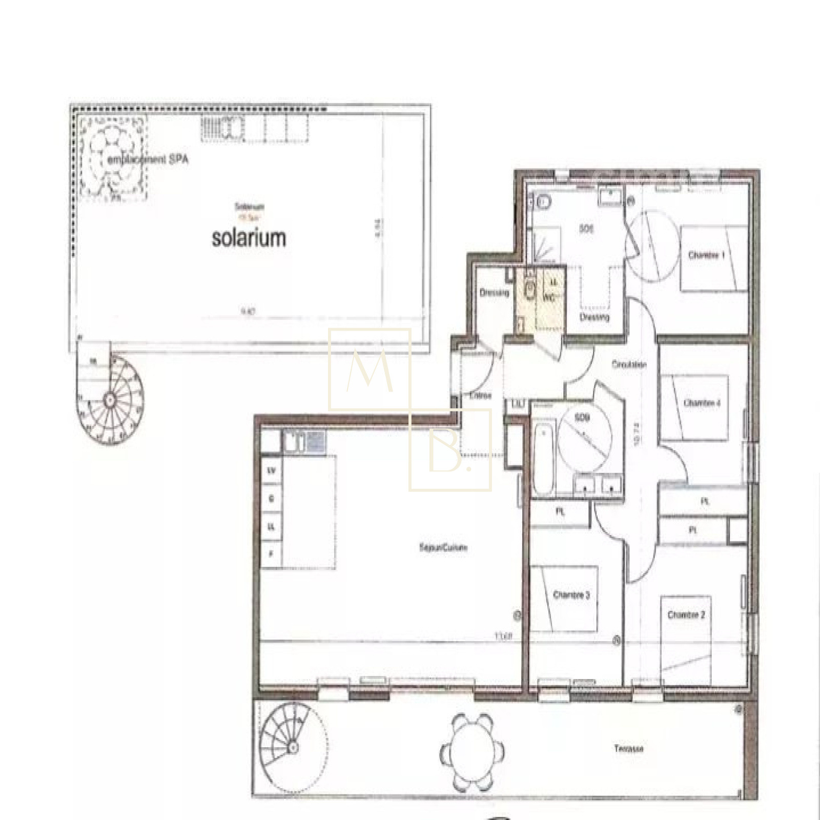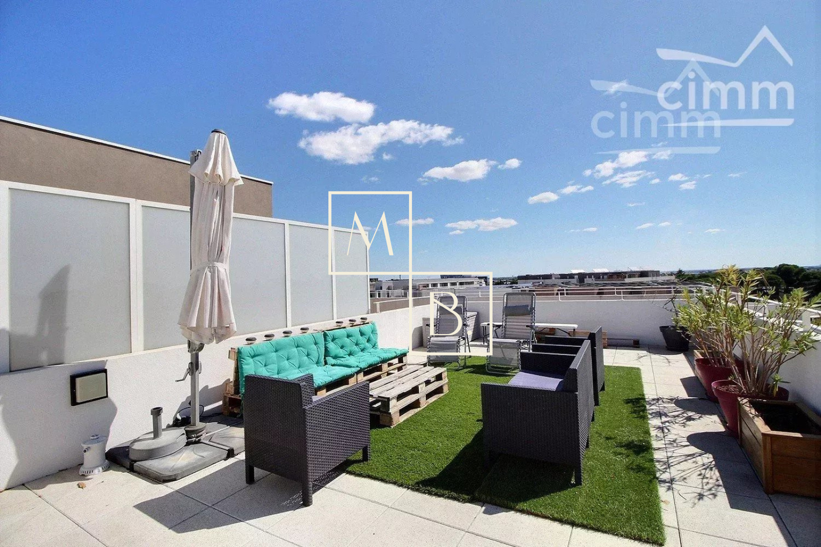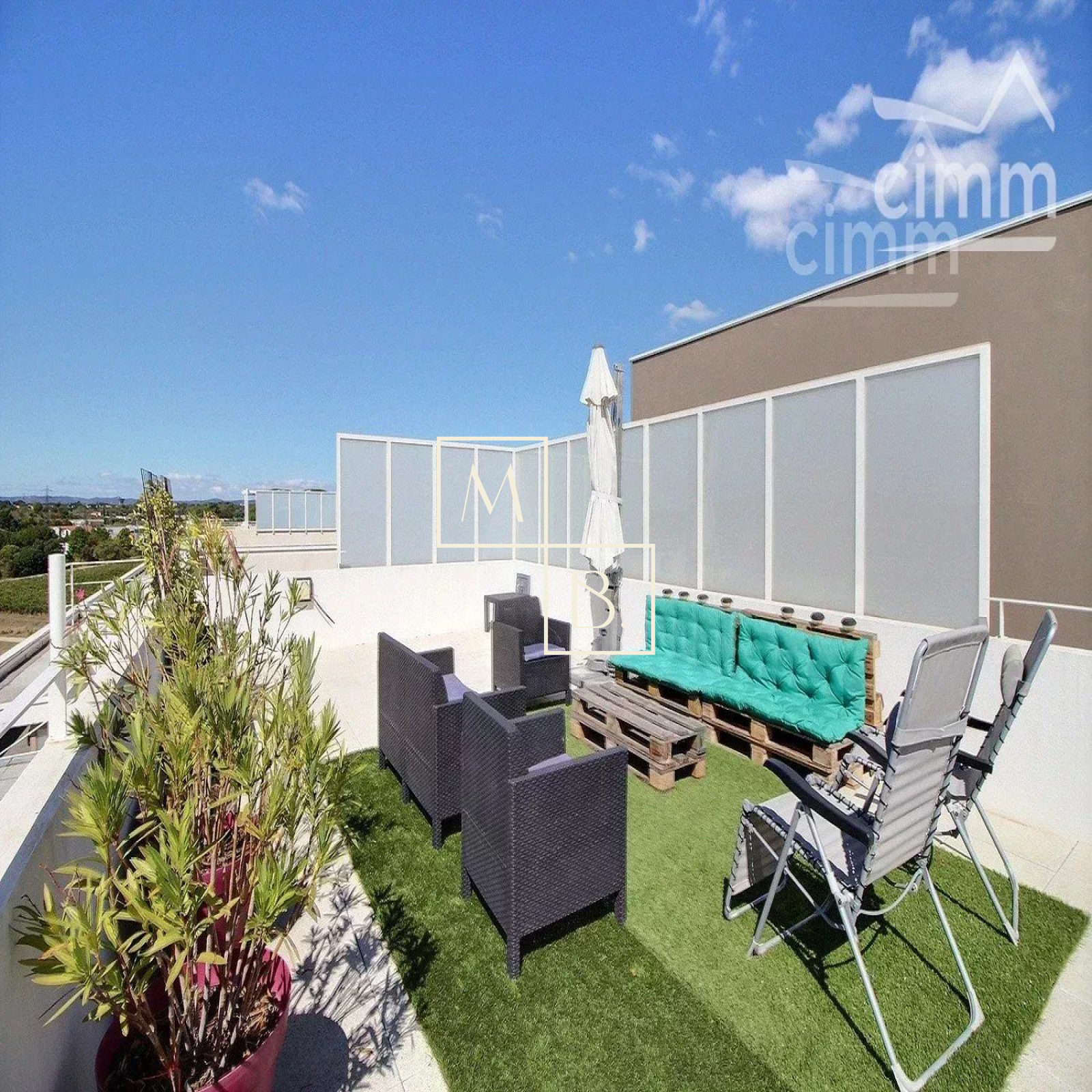 A VENDRE, Montpellier, Les Grisettes, dernier étage, appartement T5 de 108 m2 avec terrasse de 28 m2, solarium privé de 48 m2, un double garage fermé en sous sol et une cave. Situé à 5 minutes de l'arrêt de Tram Sabines, des commerces et des nouvelles Halles Plaza (16 commerces) et de la nouvelle clinique Saint Roch. À moins de 10 minutes de l'école maternelle et primaire du quartier. En parfait état situé au 3ème et dernier étage d'une résidence de bon standing construite en 2015, dénommée Régalissa et réalisée par Corim. Encore sous garantie decennale jusqu'en 2025, label BBC, norme RT2012. Exposé Sud, lumineux et bien agencé, il se compose : d'une entrée avec petit cellier/dressing, un WC séparé avec lave-mains, un double séjour de 40 m2 ouvert sur une cuisine aménagée et entièrement équipée donnant sur l'extérieur, un dégagement/couloir menant à la partie nuit qui comprend, une salle de bain avec meuble double vasque, 3 chambres avec placard/penderie (9, 10 et 11 m2), une suite parentale de 11 m2 à une salle d'eau et dressing privatif de 7 m2. Grande terrasse de 28 m2 situé au même niveau que l'appartement et sur la terrasse se trouve un escalier qui vous mènera a un magnifique solarium privé de 48 m2 situé sur le toît de l'immeuble, avec magnifique vue dégagée, sans aucun vis-à-vis et avec la possibilité d'y installer un spa. Prestations de qualité : climatisation, fenêtres et portes fenêtres double vitrage, menuiserie PVC avec isolation renforcée, volets roulants électriques chauffage par réseau urbain, eau chaude et eau froide collective (compris dans les charges). Un double garage en sous sol ainsi qu'une cave. COUP DE COEUR ASSURÉ !!! Bien soumis au statut juridique de la copropriété comprenant 67 lots d'habitation. Charges annuelles de copropriété ( Montant moyen annuel quote part budget prévisionnel vendeur ) : 3 175 €. Aucune procédure en cours menée sur le fondement des articles 29-1 A et 29-1 de la loi n°65 - 557 du 10 juillet 1965 et de l'article L. 615-6 du CCH. Honoraires à la charge du vendeur. Votre interlocuteur privilégié : Augustine HUCHIN de l'agence CIMM Montpellier, inscrite au RSAC de Montpellier sous le numéro 848 442 364.