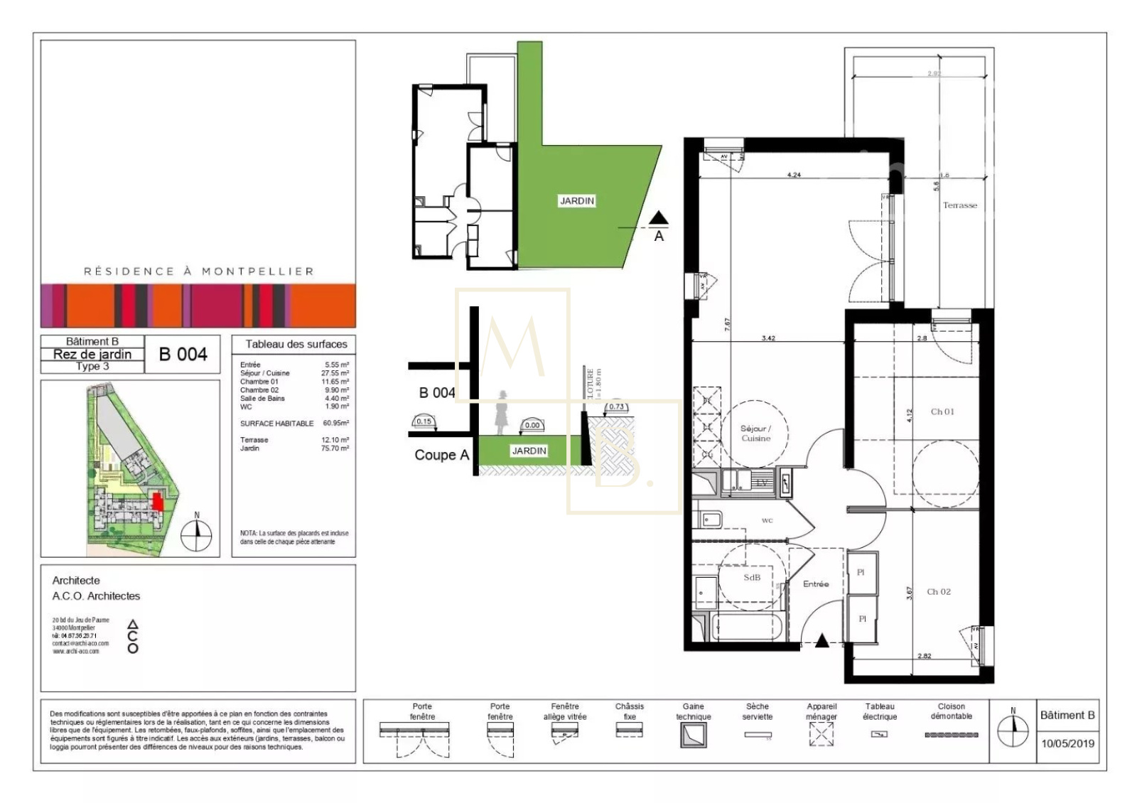 A VENDRE à MONTPELLIER, secteur La Martelle, appartement T3 de 61m² en rez-de-jardin avec terrasse, jardin et parking. Dans une résidence contemporaine, située au Nord de la Martelle à proximité des écoles, collège, lycée, commerces, et arrêt de Tram Ligne 3 « Celleneuve ». Résidence à taille humaine de 41 logements répartis sur 2 bâtiments de 2 étages disposant de beaux espaces verts et des jardins partagés. Construction BBC aux normes RT2012 avec prestations intérieures de standing. Appartement 3 pièces situé en rez-de-jardin composé d?une entrée avec rangement, séjour de 27,55m² avec cuisine ouverte donnant sur un jardin exposé EST de 76m² et une terrasse de 12m², 2 chambres de 10 et 11m² dont une avec rangement et une avec un accès à la terrasse, salle de bains et wc séparés. Personnalisation du carrelage et de la salle de bains possible afin de créer une décoration à votre goût. Place de parking privative située en sous-sol. Remise des clés prévue premier trimestre 2021. Idéal premier achat ou investissement locatif. D?autres appartements T3 ou T4 sont encore disponibles dont certains avec jardin privatifs ou en dernier étage. Contactez nous pour plus de renseignements. Votre interlocuteur privilégié : Rémi KNEZEVIC, agent commercial (RSAC Evry n°510894512).