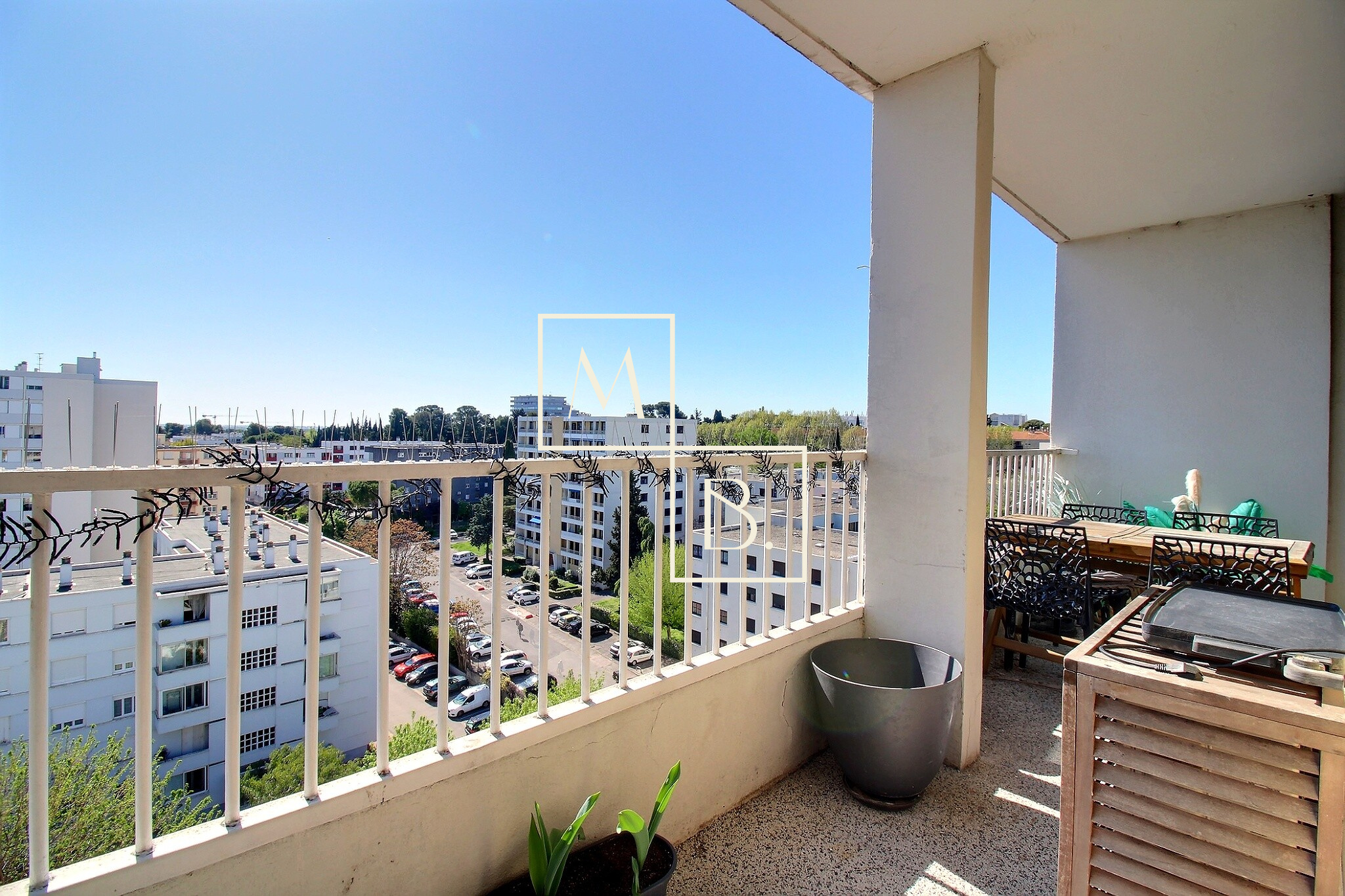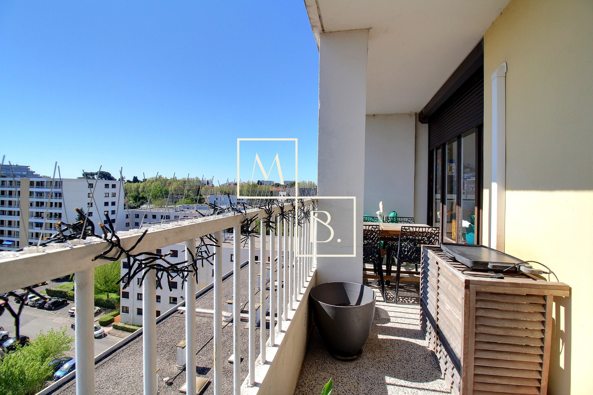 Grand balcon filant avec espace buanderie et magnifique vue dégagée.