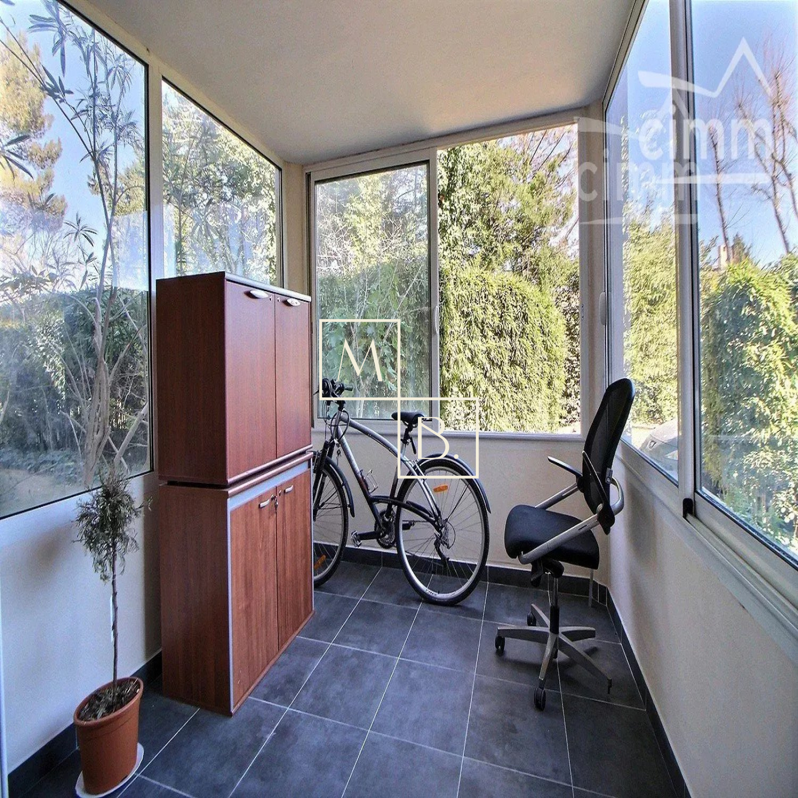 A VENDRE, Montpellier, Estanove, Parc Montcalm, grand appartement T2 de 52 m2 avec loggia fermé de 7 m2 en rez-de-chaussée et un parking privatif extérieur. Situé à proximité du rond point du M et de nombreuses commoditées, écoles, collège et à 5min des grands axes routiers. A quelques minutes à pied de la future ligne de Tram (ligne 5). Copropriété de bon standing, sécurisée, verdoyante et très bien entretenue des années 1987. Situé en rez-de-chaussée, appartement spacieux, bien agencé et comprenant : vaste entrée donnant sur un dégagement avec placard, cellier, séjour de 20 m2 ouvert sur une loggia de 7 m2, fermée par des grandes baies, cuisine indépendante aménagée et équipée, salle de bain avec baignoire, WC séparés et une chambre avec placard/penderie de 9,75 m2. Double vitrage menuiserie alu avec volet manuel et électrique (certaines pièces), chauffage électrique individuel, VMC, carrelage, parquet. Parking privatif. Très bon état général !! Bien soumis au statut de la copropriété comprenant 60 lots d'habitations. Montant moyen annuel de la quote-part du budget prévisionnel à la charge du vendeur : 898 €. Aucune procédure en cours menée sur le fondement des articles 29-1 A et 29-1 de la loi n° 65-557 du 10 juillet 1965 et de l'article L. 615-6 du CCH. Honoraires à la charge du vendeur. Votre interlocuteur privilégié : Olivier BIHI, gérant de l'agence Cimm immobilier Montpellier.
