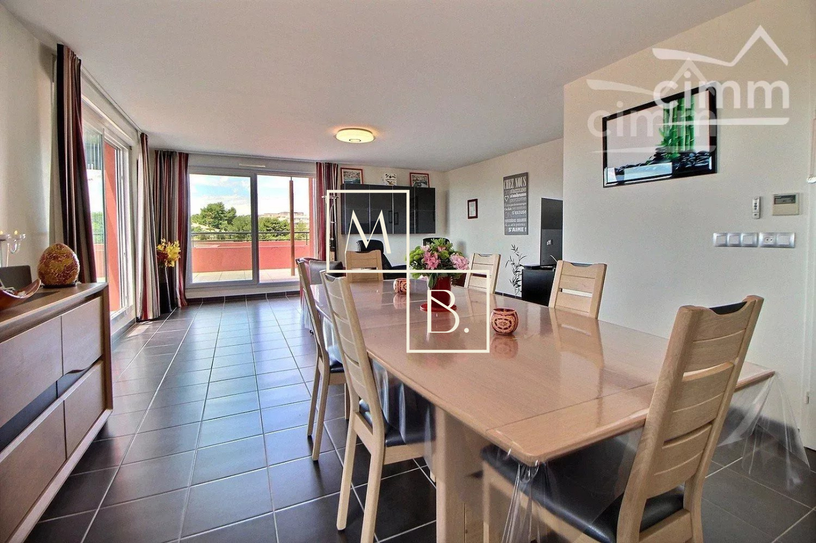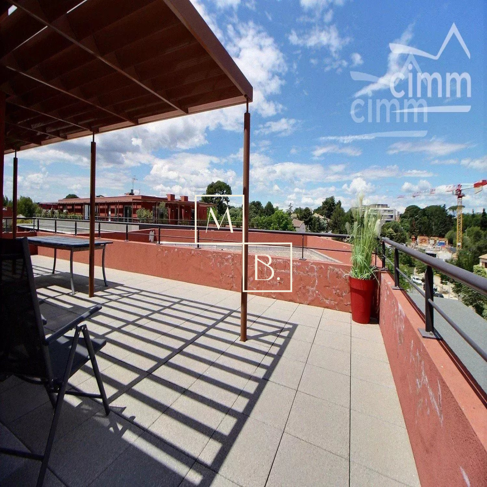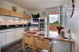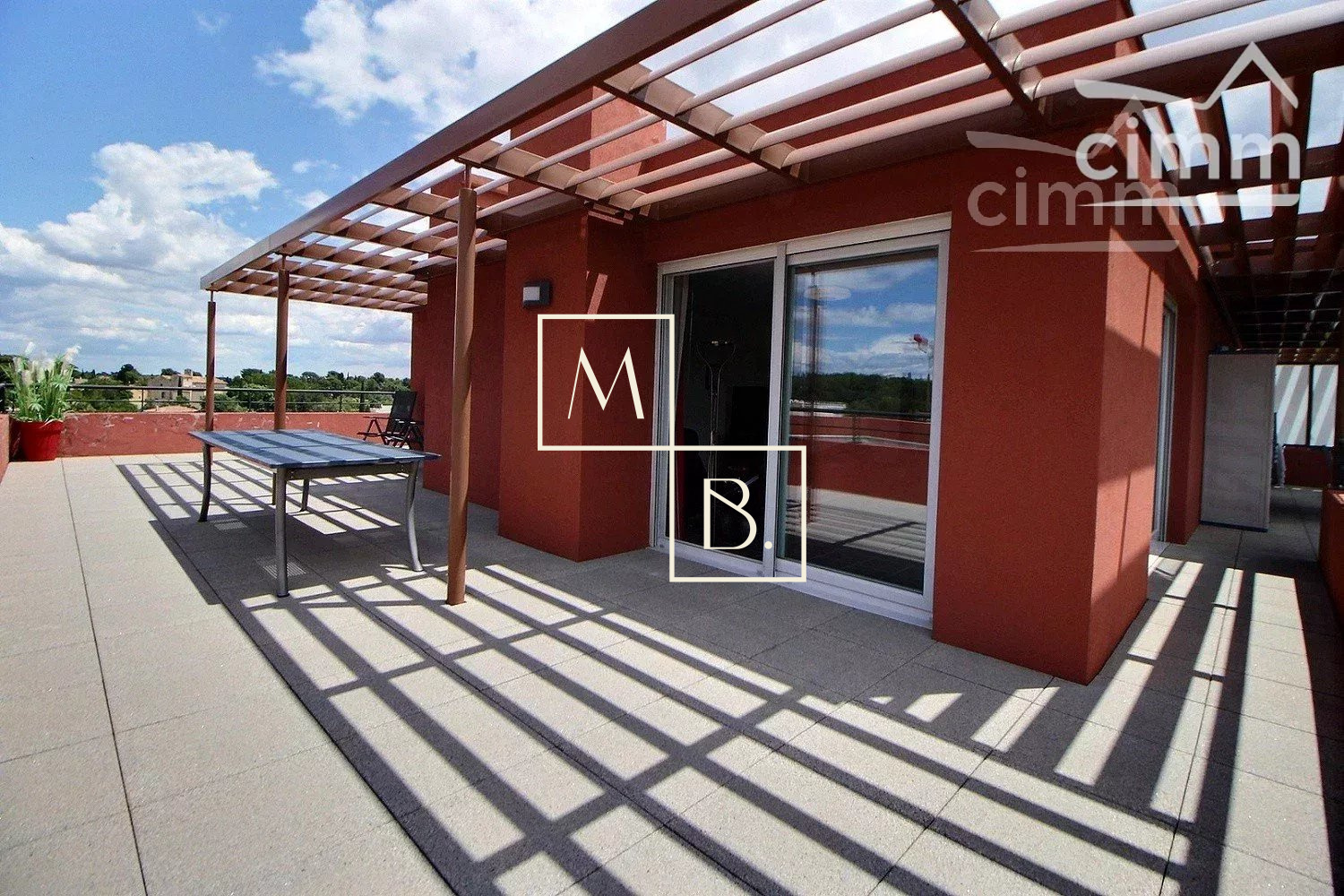 A VENDRE, Montpellier SUD, toît terrasse, DERNIER ETAGE, appartement T4 d'exception de 105 m² avec terrasse de 73 m², vue panoramique et deux garages en sous-sol. Situé à 5 min à pied de deux arrêts de Tram, en liaison directe avec le Centre historique et la gare St Roch et à quelques minutes des commodités. Accès proche de l'autoroute et plage à 15 min. Construite en 2011, cette résidence verdoyante et de très bon standing est entièrement sécurisée. Situé au 5ème dernier étage avec ascenseur, cet appartement UNIQUE sur Montpellier se caractérise par de grands espaces de vies ouverts sur une généreuse terrasse ! Spacieux et lumineux, la décoration est soignée et de très grande qualité. Bien agencé, il comprend : vaste hall d'entrée distribuant, un grand séjour de 38 m² avec baies coulissantes donnant accès à la terrasse, une cuisine indépendante haut de gamme, entièrement aménagée et équipée, un WC séparé avec espace buanderie, une suite parentale de 13 m² avec grande penderie, salle d'eau privative et l'accessiblité à la terrasse, deux autres belles chambres de 9,27 m² et 10,54 m² dont une avec placard/penderie, et une 2ème salle de douche à l'italienne indépendante avec double vasque et WC. Prestations haut de gamme : climatisation réversible, gainée et régulée à distance par smartphone avec thermostat indépendant pour chaque pièce de l'appartement, adoucisseur d'eau avec cumulus nouvelle génération extra plat, menuiseries PVC blanc en double vitrage, volets roulants alu sans fil et centralisé, fibre optique. MAGNIFIQUE terrasse de 73 m2 avec bénéficiant d'une triple exposition (sud, sud-ouest, nord-ouest). Au sous-sol, deux grands garages fermés de 20 m² et 17 m². COUP DE COEUR assuré ! Bien soumis au statut de la copropriété comprenant 152 lots d'habitations. Montant moyen annuel de la quote-part du budget prévisionnel à la charge du vendeur : 2 096 €. Aucune procédure en cours menée sur le fondement des articles 29-1 A et 29-1 de la loi n° 65-557 du 10 juillet 1965 et de l'article L. 615-6 du CCH. Honoraires à la charge du vendeur. Votre interlocuteur privilégié : Olivier BIHI, gérant de l'agence Cimm immobilier Montpellier.