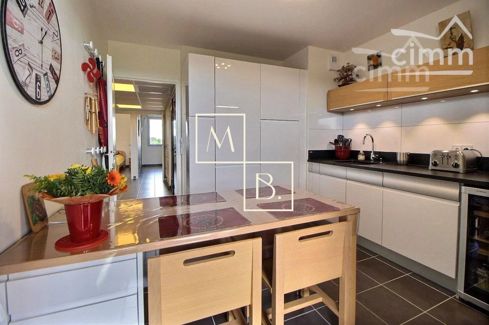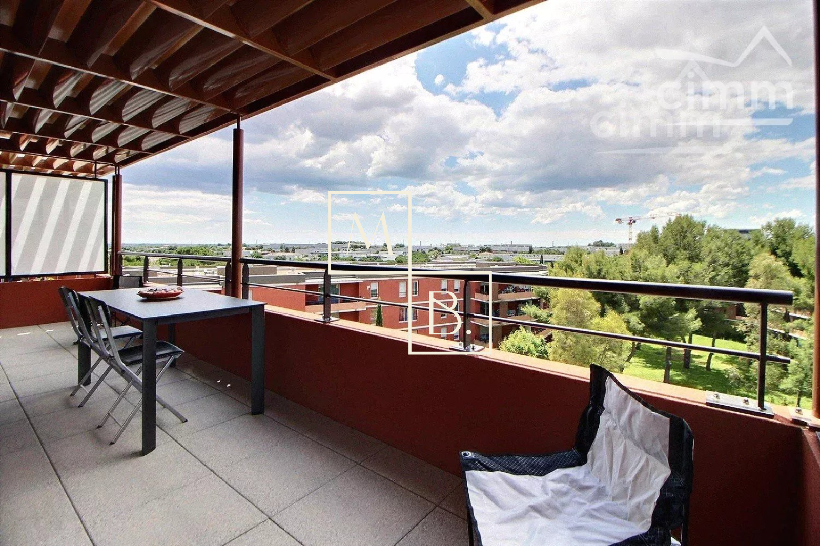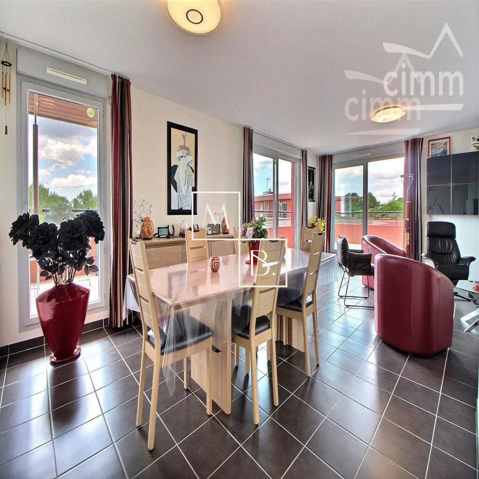 A VENDRE, Montpellier SUD, toît terrasse, DERNIER ETAGE, appartement T4 d'exception de 105 m² avec terrasse de 73 m², vue panoramique et deux garages en sous-sol. Situé à 5 min à pied de deux arrêts de Tram, en liaison directe avec le Centre historique et la gare St Roch et à quelques minutes des commodités. Accès proche de l'autoroute et plage à 15 min. Construite en 2011, cette résidence verdoyante et de très bon standing est entièrement sécurisée. Situé au 5ème dernier étage avec ascenseur, cet appartement UNIQUE sur Montpellier se caractérise par de grands espaces de vies ouverts sur une généreuse terrasse ! Spacieux et lumineux, la décoration est soignée et de très grande qualité. Bien agencé, il comprend : vaste hall d'entrée distribuant, un grand séjour de 38 m² avec baies coulissantes donnant accès à la terrasse, une cuisine indépendante haut de gamme, entièrement aménagée et équipée, un WC séparé avec espace buanderie, une suite parentale de 13 m² avec grande penderie, salle d'eau privative et l'accessiblité à la terrasse, deux autres belles chambres de 9,27 m² et 10,54 m² dont une avec placard/penderie, et une 2ème salle de douche à l'italienne indépendante avec double vasque et WC. Prestations haut de gamme : climatisation réversible, gainée et régulée à distance par smartphone avec thermostat indépendant pour chaque pièce de l'appartement, adoucisseur d'eau avec cumulus nouvelle génération extra plat, menuiseries PVC blanc en double vitrage, volets roulants alu sans fil et centralisé, fibre optique. MAGNIFIQUE terrasse de 73 m2 avec bénéficiant d'une triple exposition (sud, sud-ouest, nord-ouest). Au sous-sol, deux grands garages fermés de 20 m² et 17 m². COUP DE COEUR assuré ! Bien soumis au statut de la copropriété comprenant 152 lots d'habitations. Montant moyen annuel de la quote-part du budget prévisionnel à la charge du vendeur : 2 096 €. Aucune procédure en cours menée sur le fondement des articles 29-1 A et 29-1 de la loi n° 65-557 du 10 juillet 1965 et de l'article L. 615-6 du CCH. Honoraires à la charge du vendeur. Votre interlocuteur privilégié : Olivier BIHI, gérant de l'agence Cimm immobilier Montpellier.