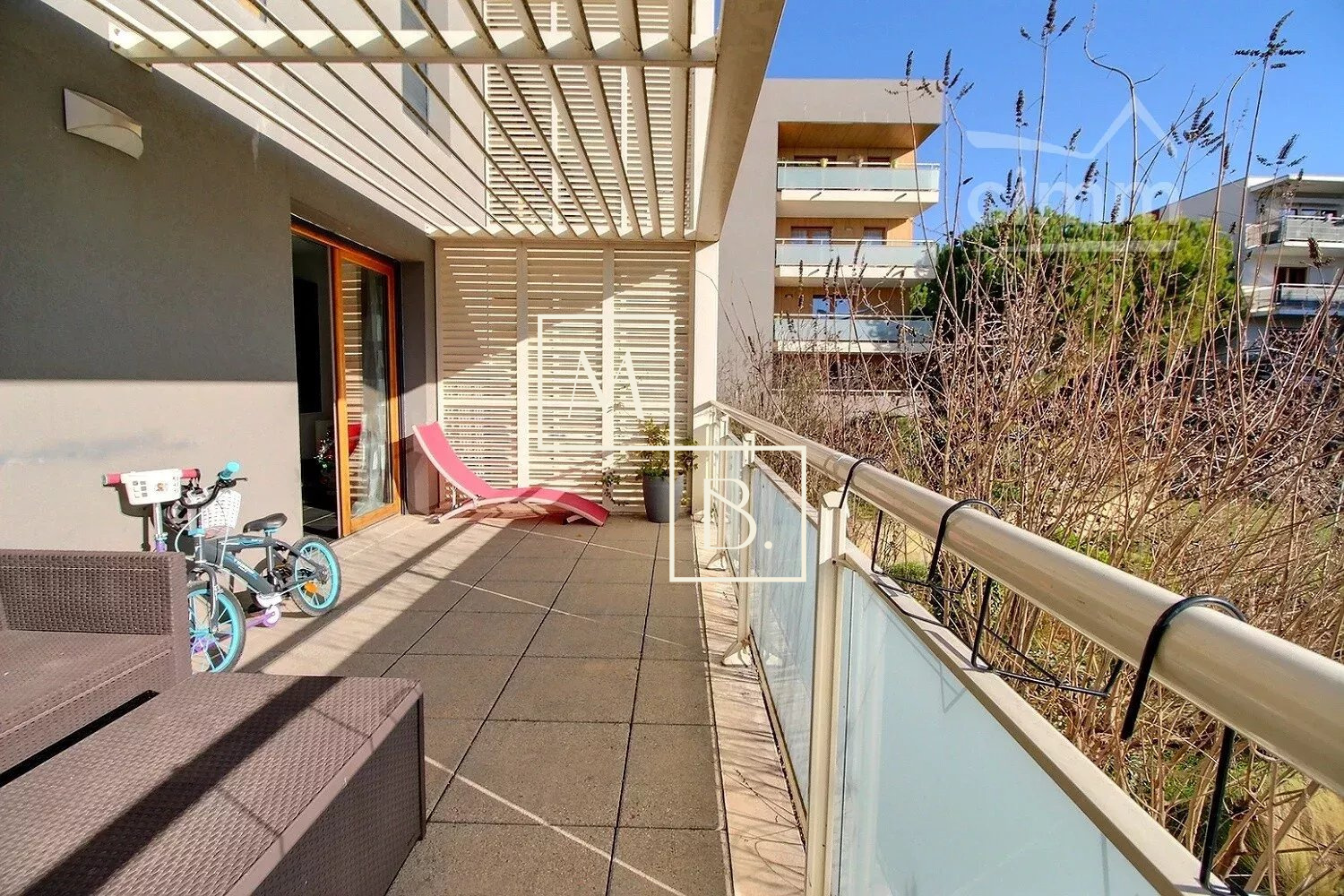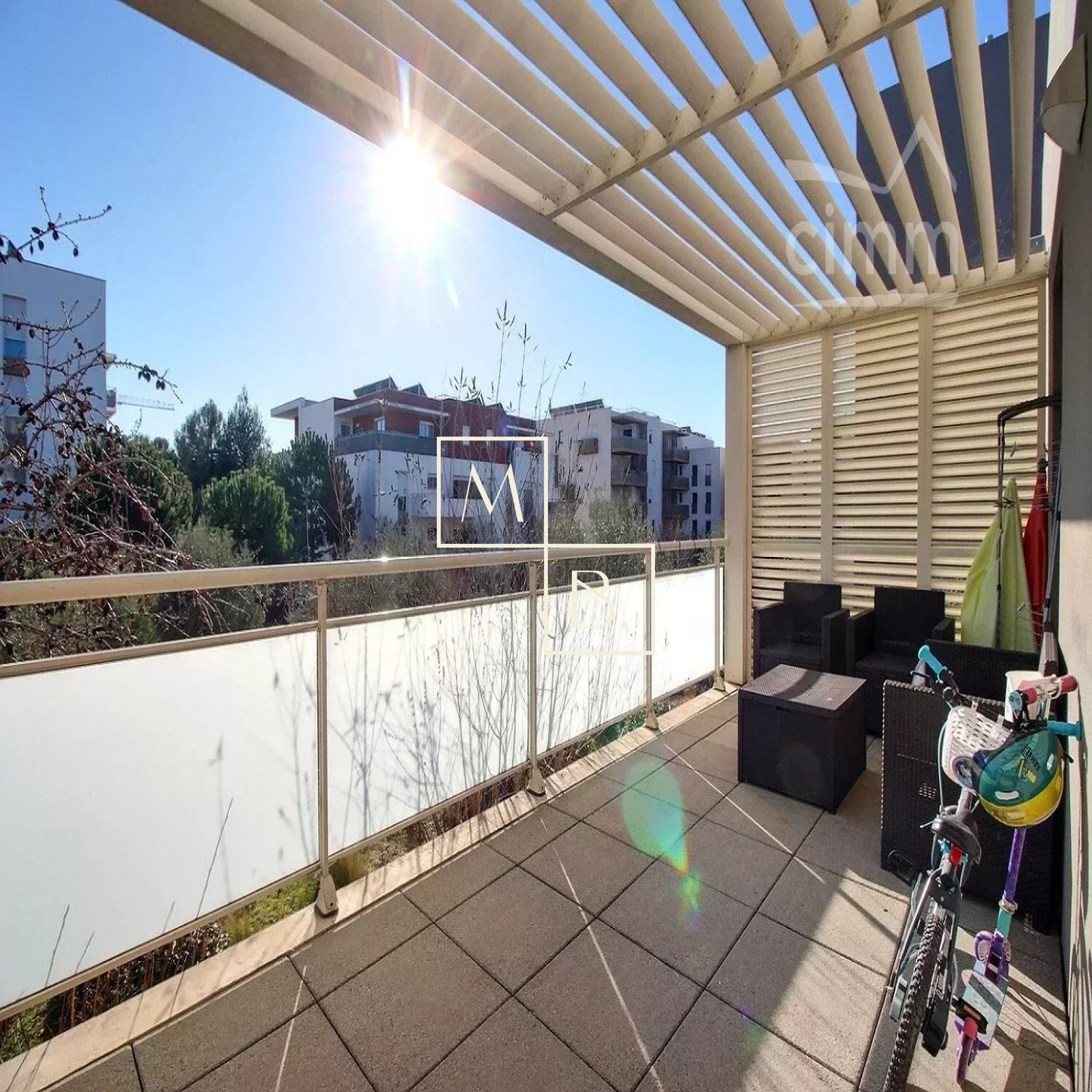 A VENDRE, Montpellier, Ovalie, GRAND T3 de 74 m² avec terrasse ensoleillée de 14 m² et garage fermé en sous-sol. A proximité du rond du Grand M, à 10 minutes de l'arrêt de Tram Les Sabines, proche des écoles, commerces et commodités, grands axes routiers et limitrophe St Jean de Védas. Copropriété de 2011, BBC RT 2005, bien entretenue et entièrement sécurisée avec visiophone. Situé en rez-de-chaussée surélevé, appartement bien agencé, exposé SUD, lumineux et bénéficiant d'une belle vue dégagée sur le Parc de la résidence. Il comprend : entrée, séjour de 29 m² ouvert sur la terrasse, cuisine indépendante aménagée et équipée, un couloir/dégagement avec placards/penderie, deux chambres (11,94 et 8,69 m²) et une vaste salle de bain avec WC de 7 m². Entièrement carrelé, menuiseries bois double vitrage, eau froide, eau chaude et chauffage central au gaz collectif (tout est compris dans les charges), fibre optique. Garage fermé en sous-sol. COUP DE COEUR !!! Bien soumis au statut de la copropriété comprenant 56 lots d'habitations. Montant moyen annuel de la quote-part du budget prévisionnel à la charge du vendeur : 1 532 €. Aucune procédure en cours menée sur le fondement des articles 29-1 A et 29-1 de la loi n° 65-557 du 10 juillet 1965 et de l'article L. 615-6 du CCH. Honoraires à la charge du vendeur. Votre interlocuteur privilégié : Olivier BIHI, gérant de l'agence Cimm immobilier Montpellier.