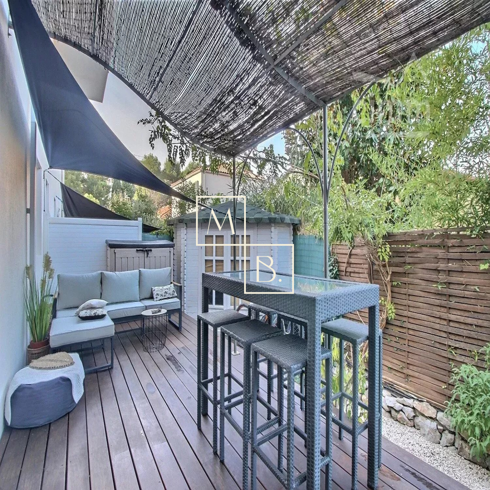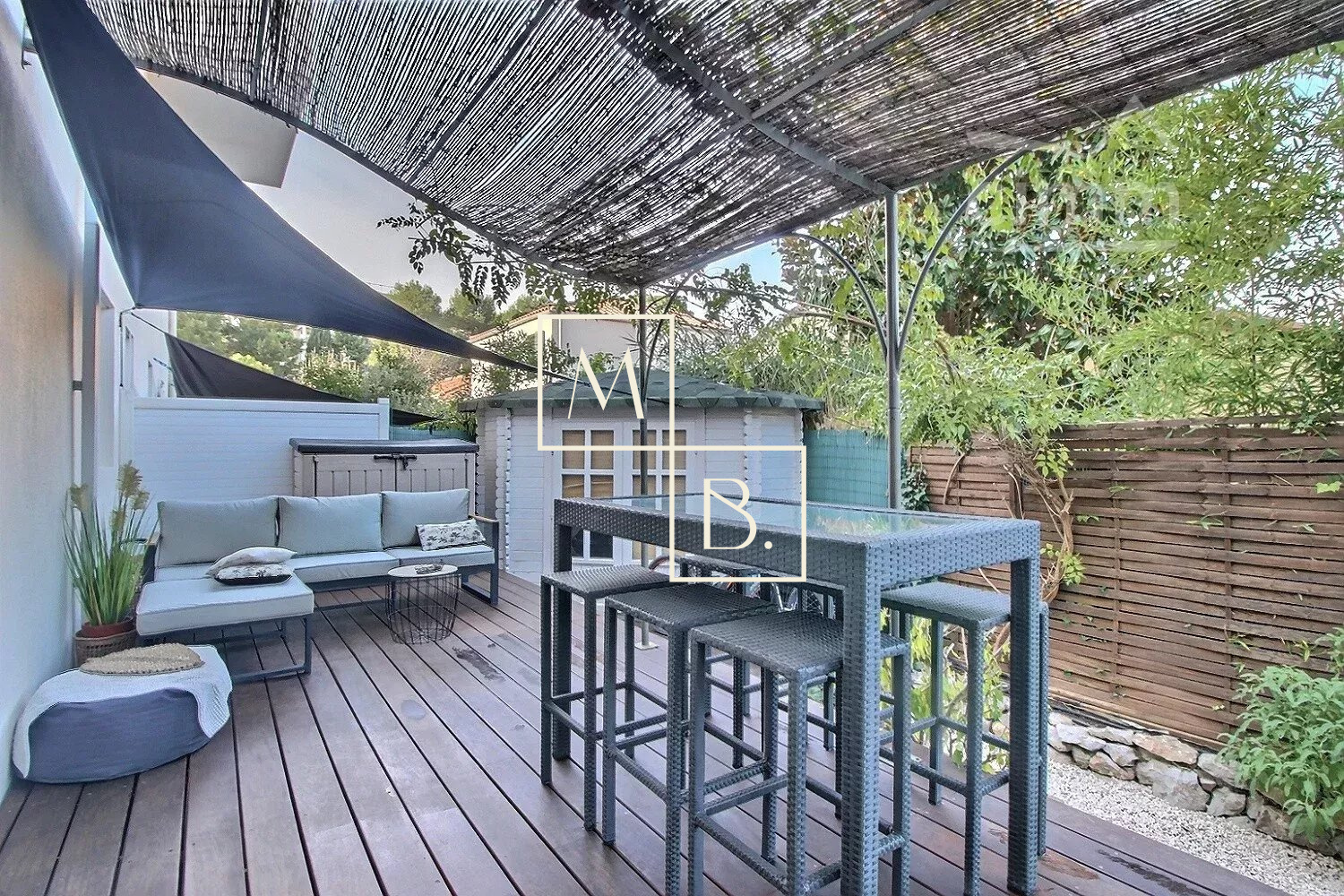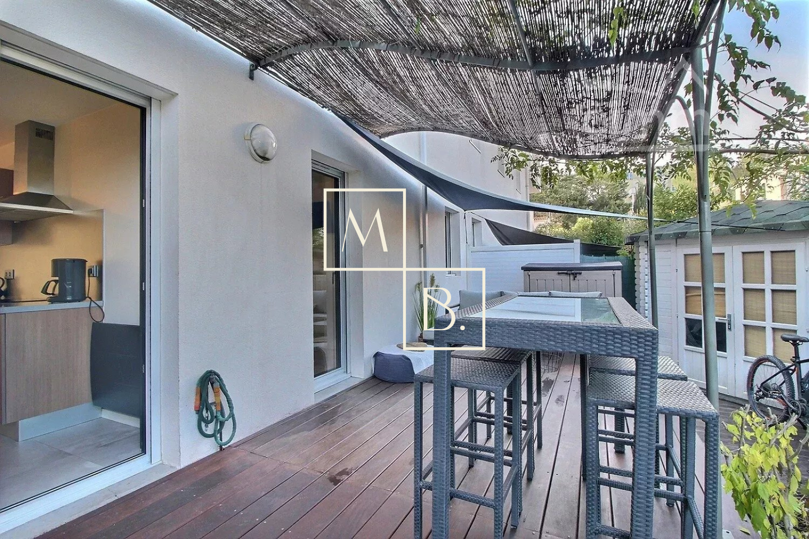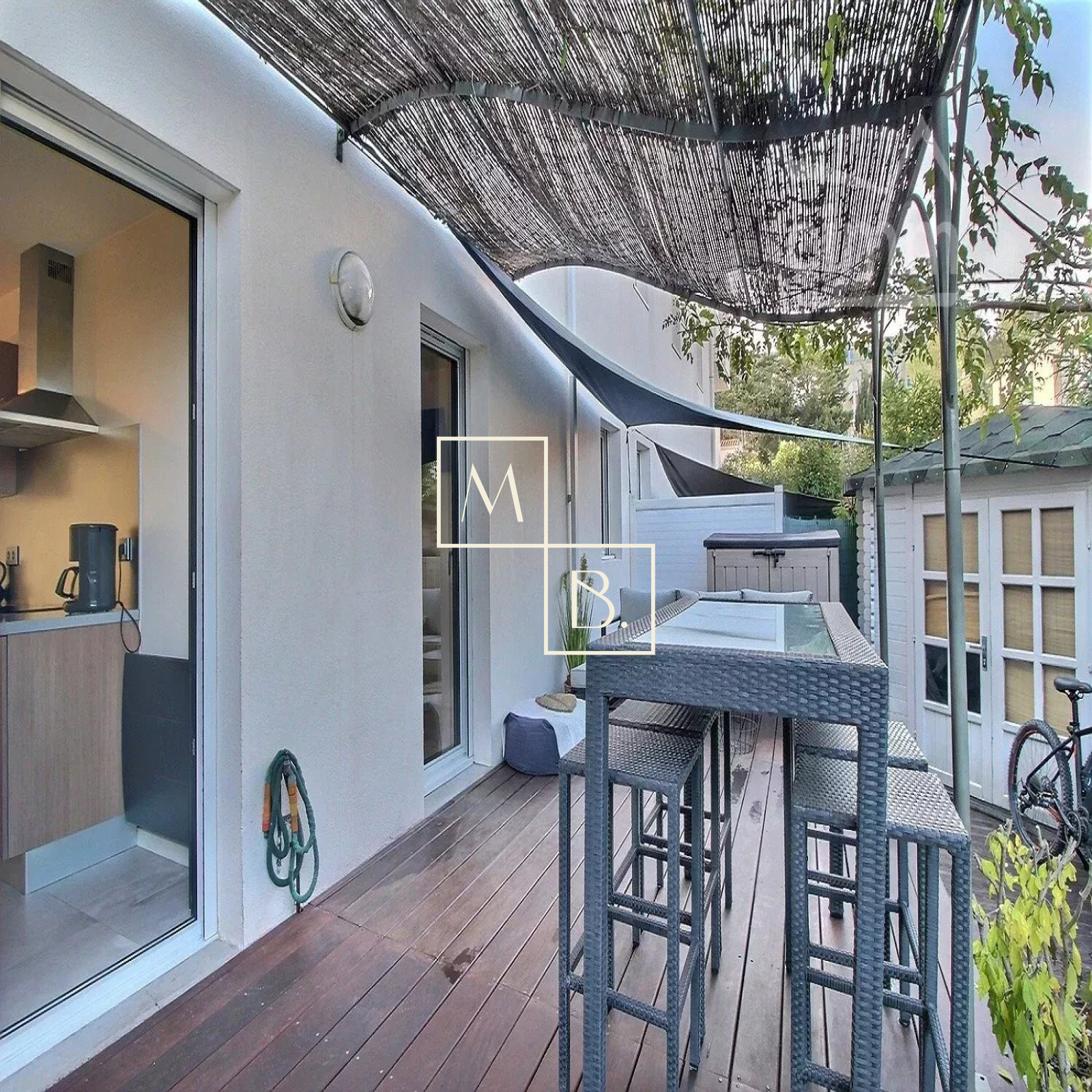 A VENDRE, Montpellier, Estanove/ Montcalm, appartement T3 de 64 m² avec 2 terrasses/jardin et une place de parking extérieure. Dans un secteur calme, au sein d'une impasse privée, à proximité de nombreux commerces et infrastructures, à proximité immédiate du parc Montcalm, à 3km du centre ville et proche de la future ligne de tram L5. Au rez-de-chaussée d?une résidence privée et sécurisée à taille humaine (30 lots) où il fait bon vivre, un appartement de standing T3 de 64 m², refait à neuf en 2020 avec des prestations de qualité. Cet appartement COUP DE COEUR comprend une éntrée sur une magnifique pièce de vie de 38 m² baignée de lumière avec accès à une première terrasse en teck de 10 m² exposée plein SUD, une cuisine aménagée et équipée ouverte donnant accès à une terrasse/jardin intimiste et sans vis-à-vis de plus de 41m² exposé NORD ainsi qu'un dédagement desservant 2 chambres (10.31 m², 9.43 m²) dont une avec placard intégré et accès à la grande terrasse , une salle de bains et WC séparés. Chauffage individuel électrique, eau chaude individuelle. Rénovation complète en 2020: isolation acoustique et thermique, baies vitrées en alu à galandage, volets roulants électriques, climatisation réversible dans la pièce de vie, carrelage 80x80cm, arrosage automatique des massifs... Ravalement de façadade réalisé en 2019. Place de parking extérieure. Montant estimé des dépenses annuelles d'énergie pour un usage standard : 510 à 750 €/an. Prix moyens des énergies indexés au 01/01/2021 (abonnement compris). Bien soumis au statut de la copropriété comprenant 30 lots d'habitations. Montant moyen annuel de la quote-part du budget prévisionnel à la charge du vendeur : 1 120 €. Aucune procédure en cours menée sur le fondement des articles 29-1 A et 29-1 de la loi n° 65-557 du 10 juillet 1965 et de l'article L. 615-6 du CCH. Honoraires à la charge du vendeur. Votre interlocutrice privilégiée : Marine Chaumeilles, agent commercial RSAC de Montpellier 890 177 389 Honoraires charge vendeur - RCS 50866299600042 - Caisse de garantie QBE Honoraires à la charge du vendeur - RCS 50866299600042 - Caisse de garantie QBE
