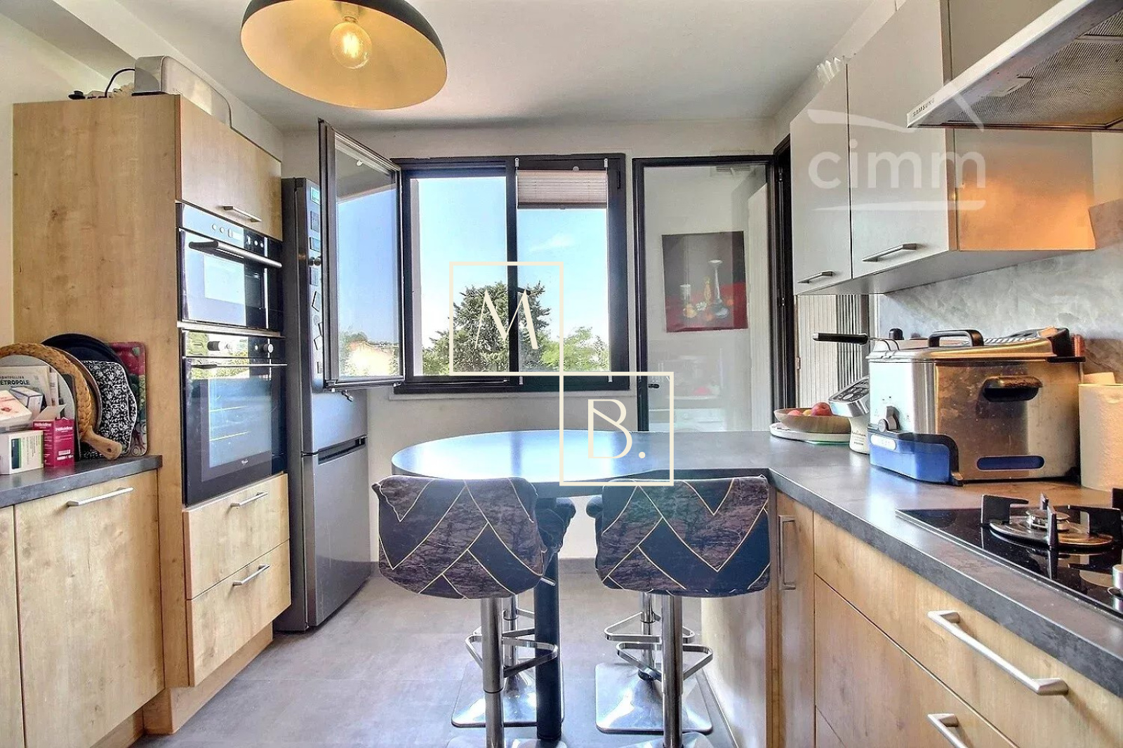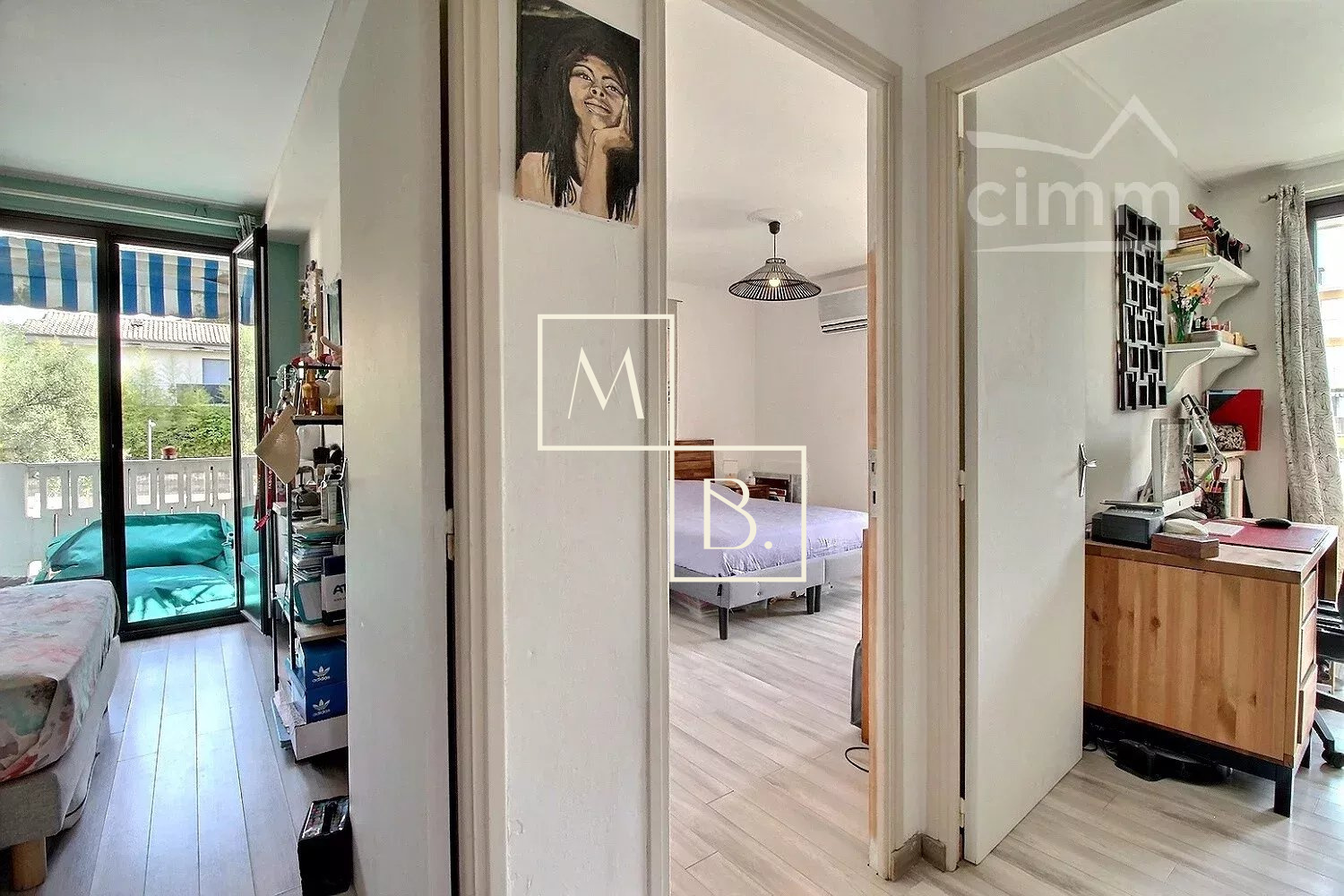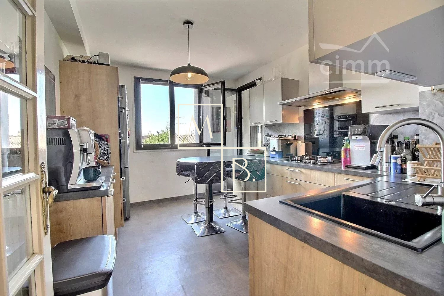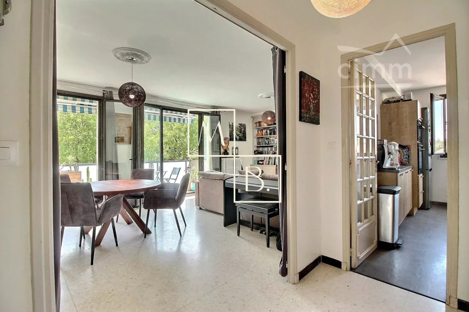 Bénéficiez d'un cadre de vie agréable et pratique au sein d'un secteur calme et résidentiel. Idéalement localisé grâce à sa proximité immédiate aux écoles (primaire, collège, lycée), infrastructures et équipements sportifs, commodités et commerces, Halle Tropisme, Château de la piscine, Parc de la Guirlande, Parc Montcalm. A quelques mètres des transports en commun, une minute à pied seulement du bus ligne 11 arrêts Etoile et Mas de Merle, 15 minutes du tramway ligne 3 arrêts Astruc et Les Arceaux ainsi que future ligne 5, accessible par chemin piéton depuis la résidence. Au premier étage sans ascenseur du bâtiment C de la résidence privée et sécurisée Le Marly (construite en 1967), cet appartement traversant de 96,54 m² habitables se compose d'une entrée menant à un double séjour d'environ 30 m², une cuisine indépendante moderne entièrement équipée et aménagée avec accès direct à une loggia permettant un espace buanderie. Un couloir avec placard/cellier dessert une salle d'eau avec douche à l'italienne et WC ainsi qu'un WC séparés. Un second couloir avec rangements distribue la partie nuit, deux chambres de 9,71 m², 10,13 m² et une troisième de 14,39 m² avec placards intégrés. Chacune dispose d'une ouverture sur un balcon et une terrasse filante de 13,50 m², exposée sud-est, verdoyante et baignée de soleil. Prestations : double vitrage aluminium, volets menuiserie, stores bannes, climatisation simple dans le séjour et chambre principale, fibre optique, tableau électrique récent (moins de deux ans), chauffage et eau chaude individuels au gaz. Une place de stationnement extérieure et un garage fermé de 16 m² en sous-sol de la résidence complètent le tout.