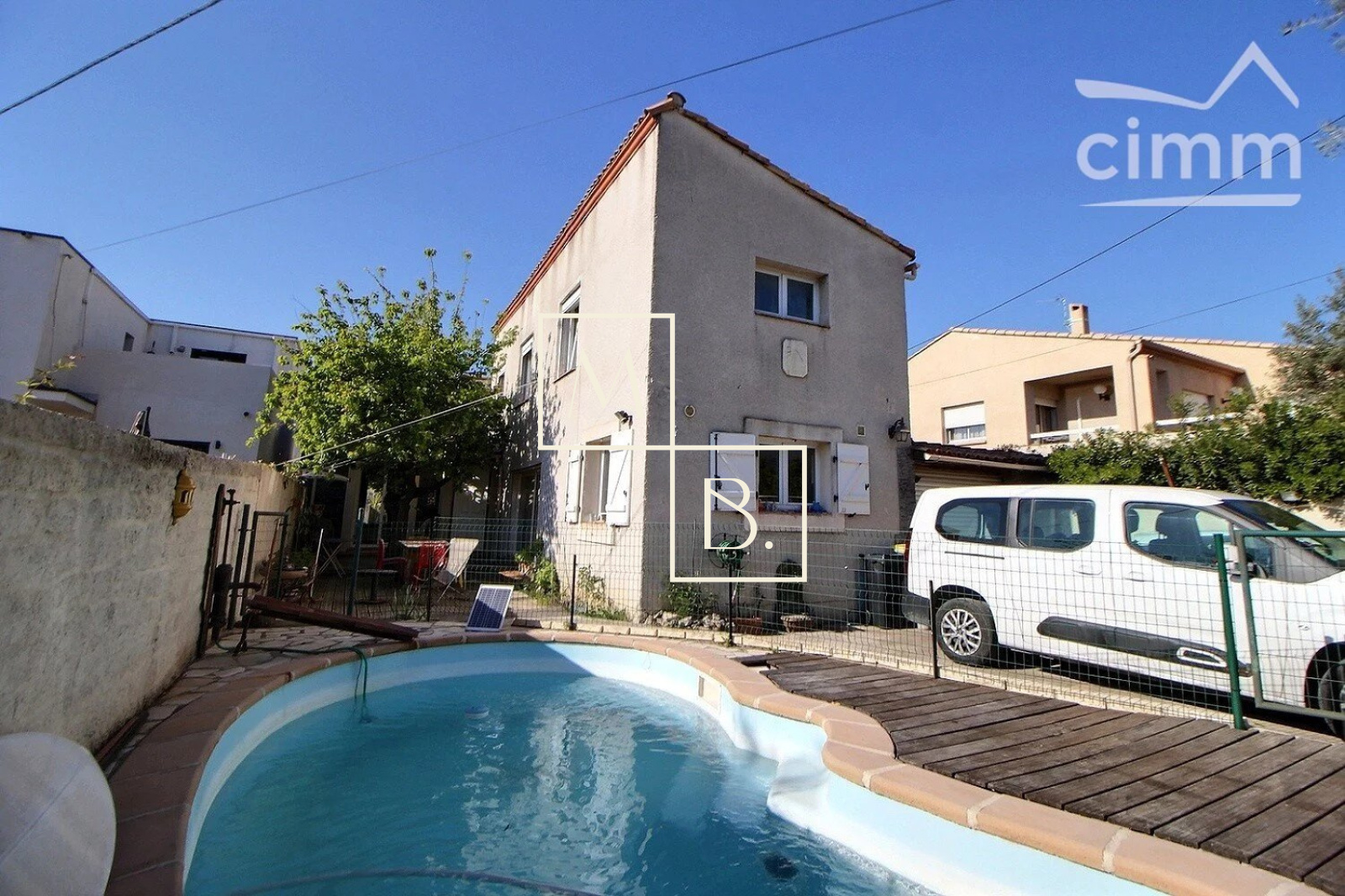 A VENDRE, Montpellier secteur Pompignane, villa individuelle 6 pièces d'environ 150 m² habitable avec piscine, terrasse, patio, garage, le tout sur 357 m² de terrain. IDEALEMENT située au bord du Lez, à deux pas de Antigone, à 5min à pied du Tram arrêt Place de l'Europe et 10min de l'arrêt Pompignane et situé non loin du centre ville de Montpellier avec toutes ces commoditées et très nombreux commerçants. Construite dans les années 1920-1930 et agrandi en 1989, l'agencement intérieur est ATYPIQUE, fonctionnel et vous réservera beaucoup de surprise ! Maison lumineuse graçe à sa triple exposition (Sud/Ouest/Est) qui comprend au rez-de-chaussée : une entrée, un beau séjour avec poêle à gaz, une cuisine ouverte aménagée et équipée, un dégagement distribuant une chambre avec mezzanine et dressing, un patio couvert, un petit bureau ou une autre chambre avec mezzanine également, une salle de jeux/TV, une chaufferie/buanderie, une salle de douche et un WC séparé. A l'étage, un couloir distribuant 2 chambres, une salle d'eau et un deuxième WC séparé. Double vitrage menuiserie PVC, store électrique, volet, climatisation réversible (séjour), chauffage gaz de ville à condensation (chaudière de 10 ans), chauffe eau solaire, poêle à gaz. Garage avec porte électrique, patio avec sauna, terrasse, piscine au sel, et forage. Quelques travaux de rénovation seront à prévoir ! Votre interlocuteur privilégié : Olivier BIHI, gérant de l'agence Cimm immobilier Montpellier.