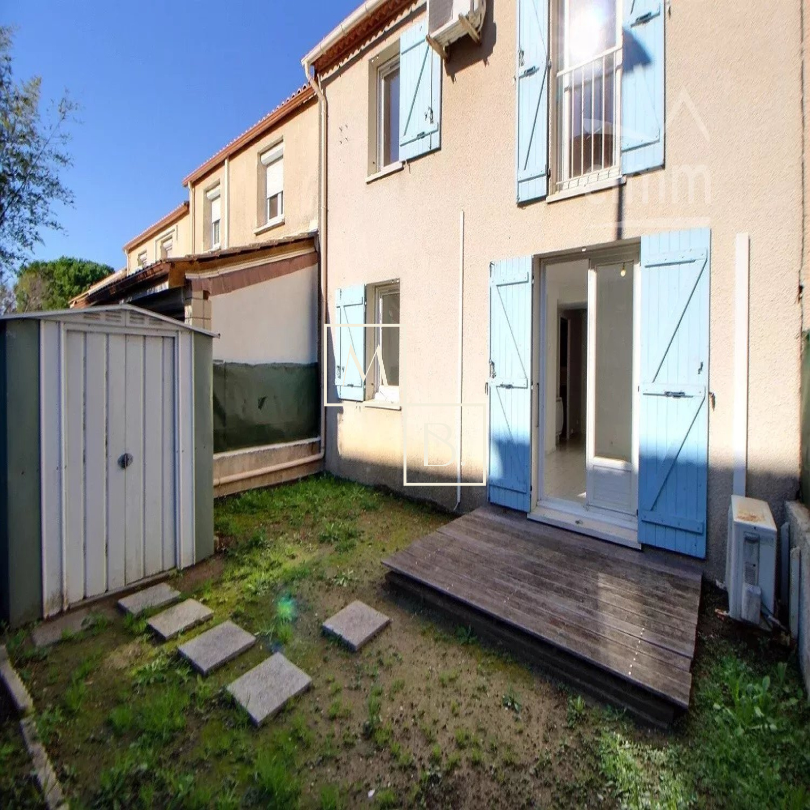 A VENDRE à MONTPELLIER, secteur Ovalie / Bagatelle, Maison 4 pièces de 80m² au sol avec 3 chambres, jardin et parking. Située dans un lotissement construit en 1986 à proximité immédiate des commerces, écoles, collège, crèche, bus et futur arrêt de la ligne de Tram ligne 5. Maison T4 de 75m² habitable accolée des deux côtés, bien agencée et comprenant : une entrée avec rangement, wc séparés, une cuisine aménagée et équipée de 10m² avec ouverture sur séjour lumineux de 22m², jardin de 35m² exposée Sud-Est. A l'étage: palier donnant sur 3 chambres de 10m² dont une avec rangement, salle de douche et wc séparés. Deuxième jardin de 50m² avec terrasse, remise et stationnement devant la maison. Chauffage électrique, climatisation réversible, double vitrage PVC. Terrain clos de 158m². Montant estimé des dépenses annuelles d'énergie pour un usage standard : 765 €/an. Prix moyens des énergies indexés au 01/01/2015 (abonnement compris). Honoraires à la charge du vendeur. Votre interlocuteur privilégié : Rémi KNEZEVIC, Agent commercial (RSAC Montpellier n°510894512).