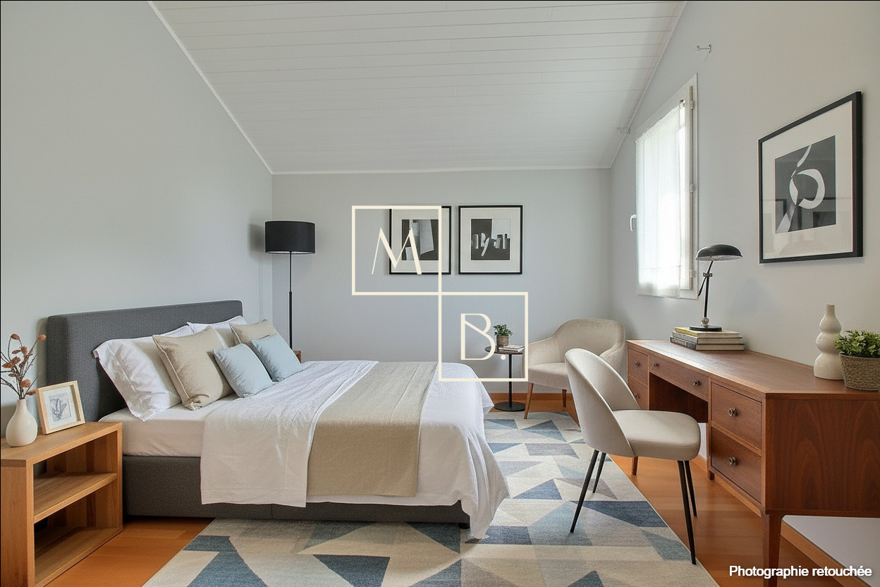 Maison B. vous présente cette belle maison INDIVIDUELLE construite en 1987 comprenant une entrée, wc séparés, chambre, cuisine indépendante aménagée fonctionnelle avec possibilité d'ouvrir sur le séjour donnant sur un beau jardin calme sans vis-à-vis et arboré exposé SUD-OUEST. A l'étage: salle de bains avec wc, 3 chambres dont une avec mezzanine et espace douche. Garage avec mezzanine et stationnement devant la maison. Terrain clos de 220m².