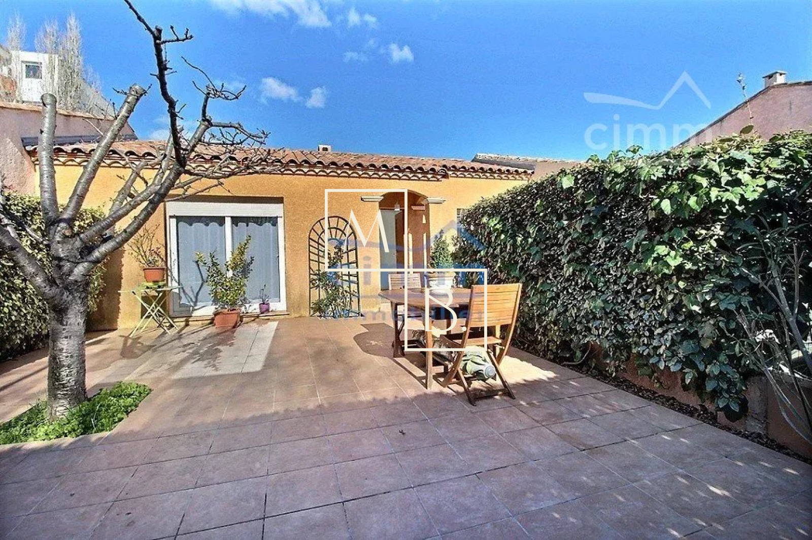 A VENDRE à Montpellier, secteur Bagatelle (Ovalie), villa 4 pièces plain pied de 83m2 habitable avec 2 chambres, cour et une magnifique terrasse. Secteur pavillonnaire calme et agréable à proximité des commerces, commodités et proche de l'arrêt de bus ligne 11 Bagatelle. Constrution traditionnelle de 1999, mitoyenne des deux côtés, entièrement rénové. Bien agencée, lumineuse et exposée sud elle comprend : un double séjour de 35m2 avec insert à bois donnant sur une trés belle terrasse, une cuisine ouverte entièrement aménagée et équipée, un dégagement, un WC séparés, une buanderie, une salle de bains avec vasque, baignoire + douche à l'itallienne, 2 chambres dont 1 avec placard donnant sur une jolie cour. Volets roulants électriques, double vitrage menuiserie PVC. Un emplacement de parking. Jardin, grande terrasse, abris de jardin. Le tout sur un terrain clos 216m2. Honoraires à la charge du vendeur. Votre interlocuteur privilégié: Olivier BIHI, gérant de l'agence Cimm Immobilier Montpellier.