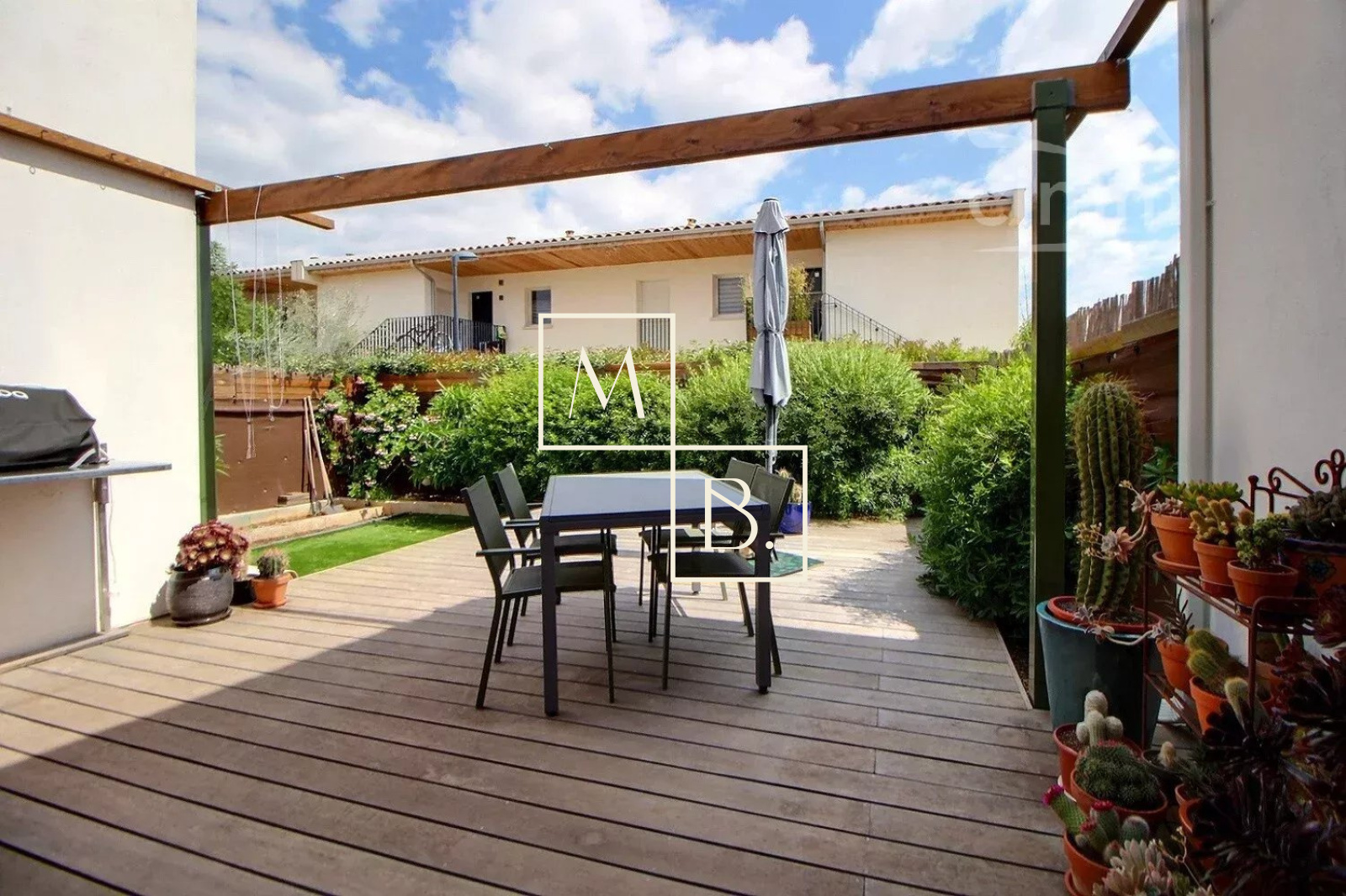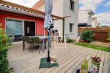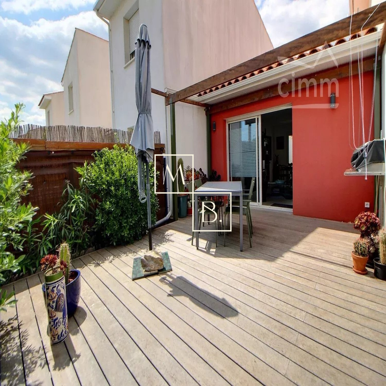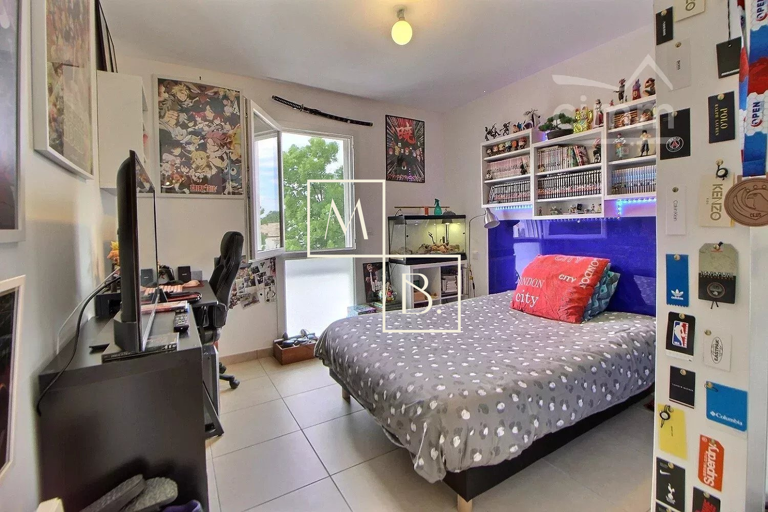 A VENDRE, Mudaison proche Mauguio, villa mitoyenne T4 de 91 m² avec 3 chambres, jardin, terrasse et dépendance de 6 m². Joli village situé à une vingtaine minutes de Montpellier, et à proximité immédiate du centre-ville et de ses commerces. Secteur pavillonnaire, mitoyenne des deux côtés de 91 m² au sol dont 88,80 m² habitable, construction de qualité datant de 2018, encore sous garantie décennale et aux normes BBC RT 2012. Décoré avec soin, bien agencé et lumineuse, cette jolie maison comprend : - au rez-de-chaussée : une entrée sur un beau séjour de 41 m² avec cuisine ouverte entièrement aménagée et équipée, un cellier de 5 m², un WC séparé et une chambre de 11 m² avec son dressing de 3 m². - à l'étage : un palier distribuant deux chambres de 10 et 11 m² et salle de bains avec WC. Intérieur carrelé, double vitrage menuiserie PVC et baie vitrée alu, volets roulants électriques, ballon d?eau chaude thermodynamique, chauffage électrique, climatisation réversible (séjour). Cour gravillonnée à l'avant de la maison, dépendance de 6 m² faisant office d'atelier/cellier et deux places de parking extérieur. Le tout édifié sur un joli terrain clos, arboré de 194 m² avec une superbe terrasse bois. Coup de c?ur assuré ! Montant estimé des dépenses annuelles d'énergie pour un usage standard : 580 à 840 €/an. Prix moyens des énergies indexés au 01/01/2021 (abonnement compris). Honoraires à la charge du vendeur. Votre interlocuteur privilégié : Olivier BIHI, gérant de l'agence Cimm immobilier Montpellier.