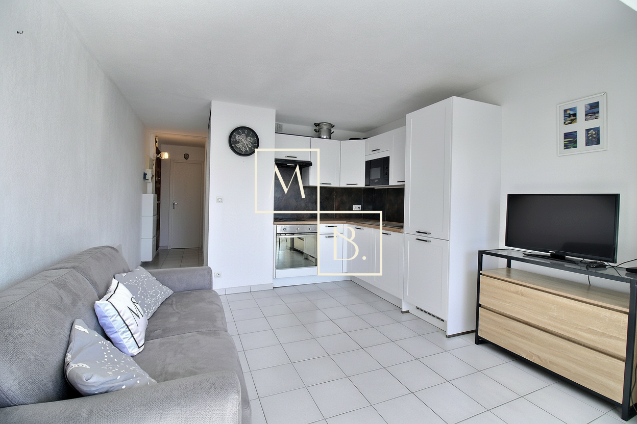 Maison B. vous présente dans une petite résidence construite en 1993, calme et sécurisée, au 1er étage sur 2 sans ascenseur, cet appartement T2 de 34,34 m² dont 28,45 m² loi carrez et loggia fermée de 5,89 m². Il comprend une entrée fonctionnelle avec placard/penderie, un séjour avec cuisine ouverte équipée, une chambre, une salle d'eau moderne avec douche à l'italienne et un wc séparé. Loggia aménagée en coin repas avec grandes baies-vitrées coulissantes.